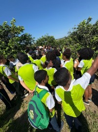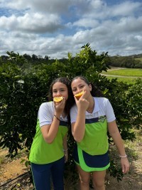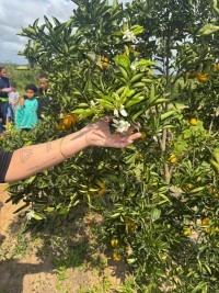 Durante a visita, os estudantes acompanharam de perto todo o ciclo de produção da laranja folha murcha — desde o plantio até a colheita — e puderam entender a importância de cada etapa, respeitando o processo de cultivo, manutenção e comercialização da fruta.