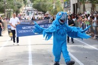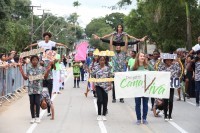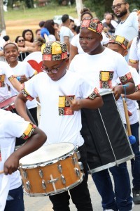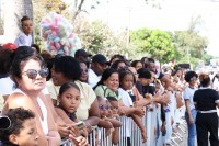 A solenidade começou com o hasteamento das bandeiras em frente à Subprefeitura. Em seguida, a Avenida Central foi tomada por cores, sons e emoção, no percurso que seguiu da Praça de São Vicente até o redutor de velocidade.
