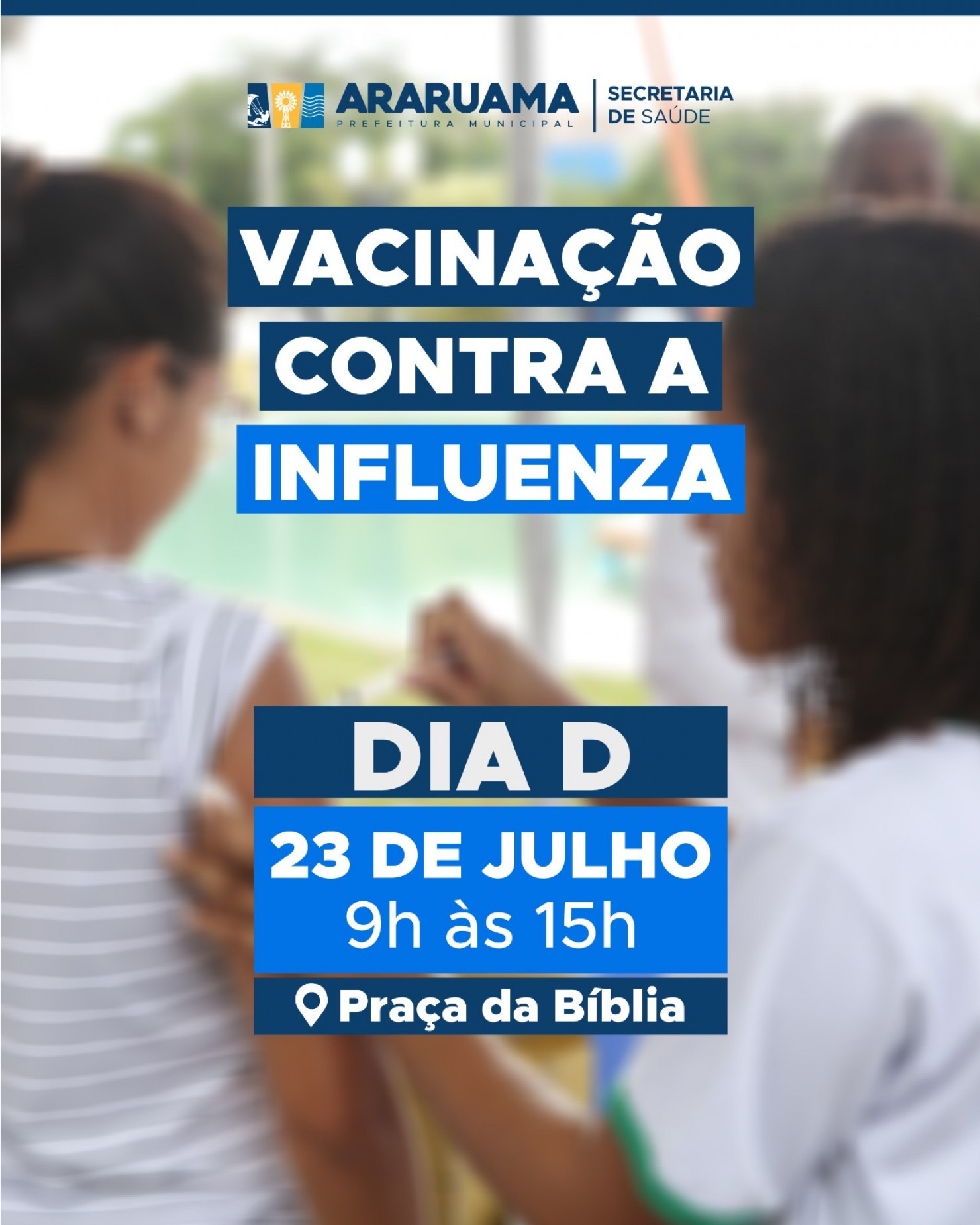 A Prefeitura de Araruama, por meio da Secretaria de Saúde, promove no dia 23 de julho o Dia D de intensificação da vacinação contra a gripe (Influenza).