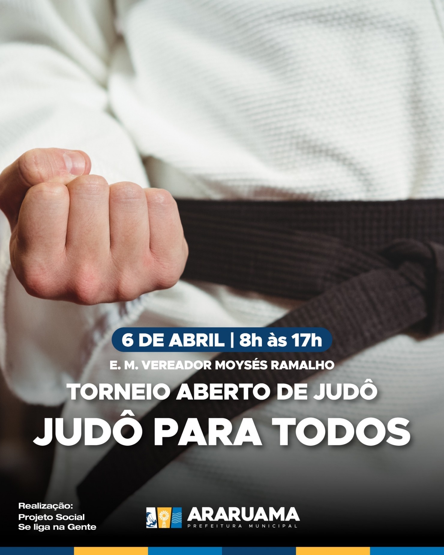 No dia 6 de abril, o Ginásio Poliesportivo da Escola Municipal Vereador Moysés Ramalho, localizado na Vila Capri, será palco de um dos eventos mais importantes do judô na região: o Torneio Aberto de Judô, realizado por meio do projeto social "Se Liga na Gente, Judô para Todos", com apoio da Prefeitura de Araruama.