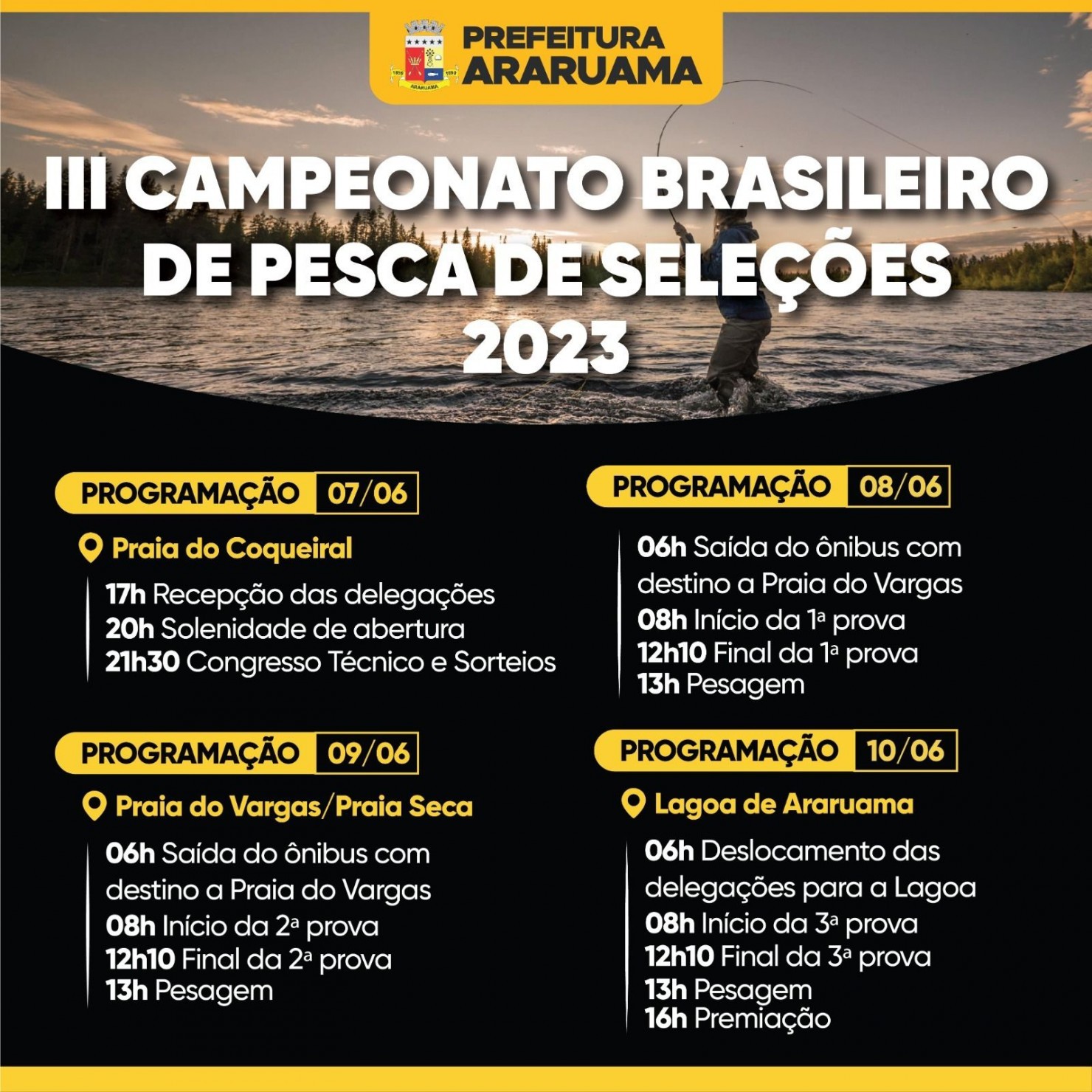 O evento é organizado pela Federação de Pesca e Lançamento do Estado do Rio e conta com o apoio da Prefeitura de Araruama, por meio da Secretaria de Agricultura, Abastecimento, Pesca e Proteção Animal.