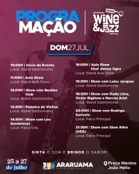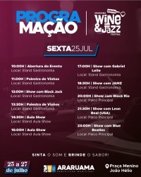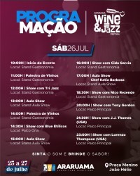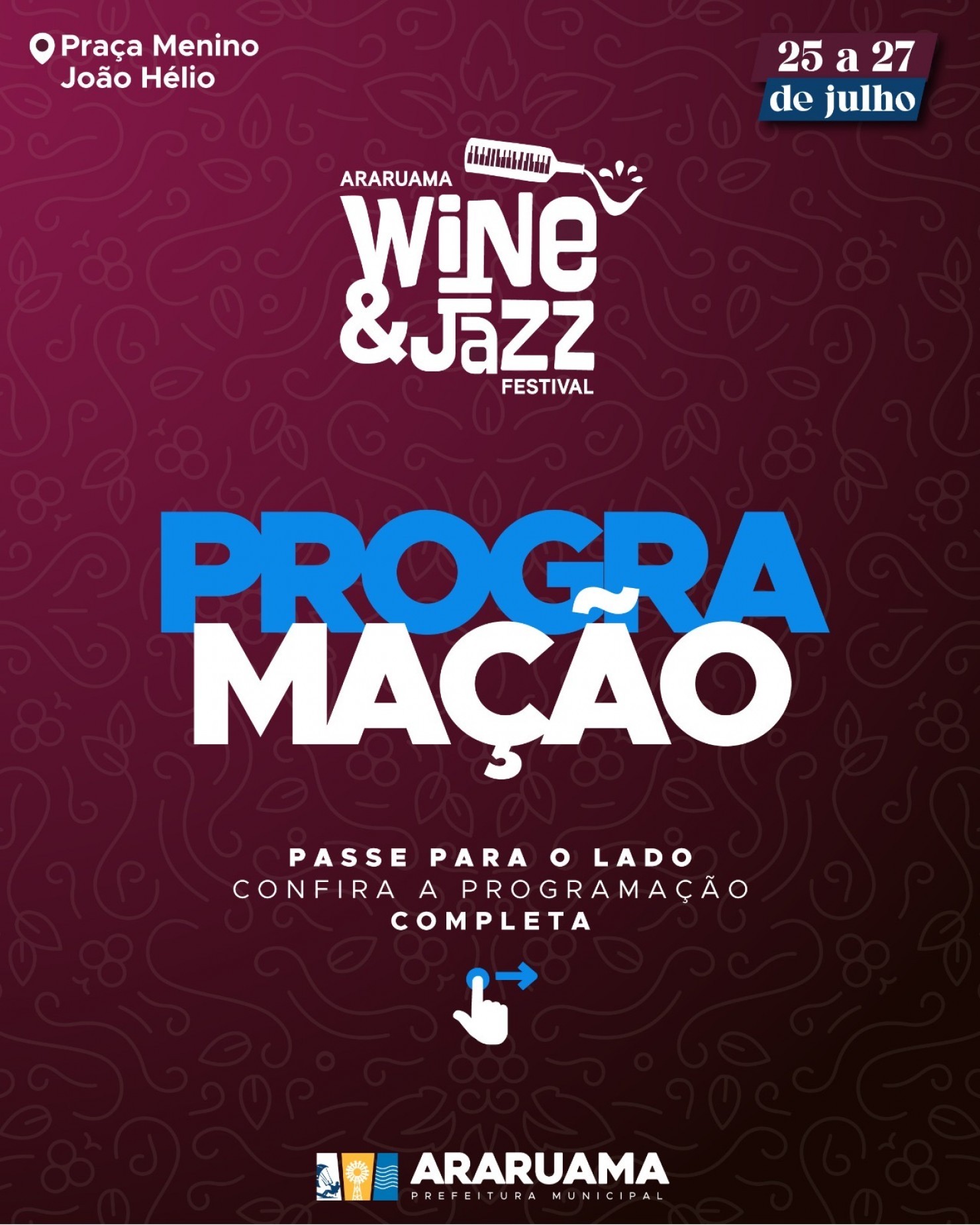 Araruama já está se preparando para mais uma edição do Araruama Wine Jazz Festival, que acontece nos dias 25, 26 e 27 de julho, na Praça Menino João Hélio, no Centro. O evento — que já faz parte do calendário cultural da cidade — vai reunir grandes nomes da música nacional e internacional, chefs renomados, sommeliers e atrações para todos os gostos.
