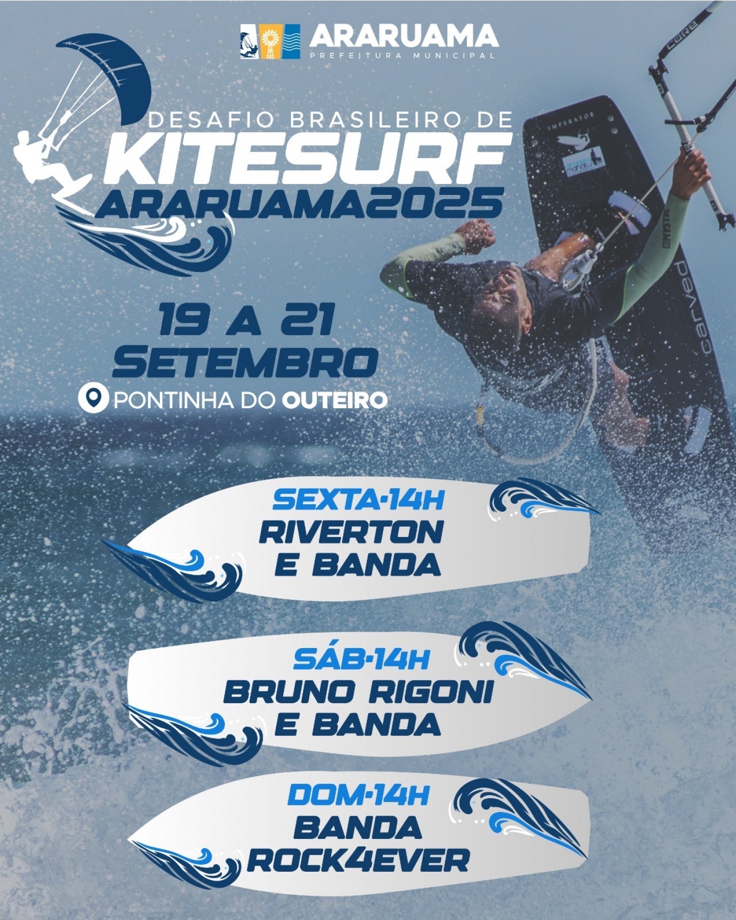 Araruama se prepara para um fim de semana de muita adrenalina, cultura e diversão. O Desafio Brasileiro de Kitesurf, que acontece na Praia Pontinha do Outeiro, vai oferecer não apenas manobras radicais na água, mas também uma programação musical especial para animar o público.