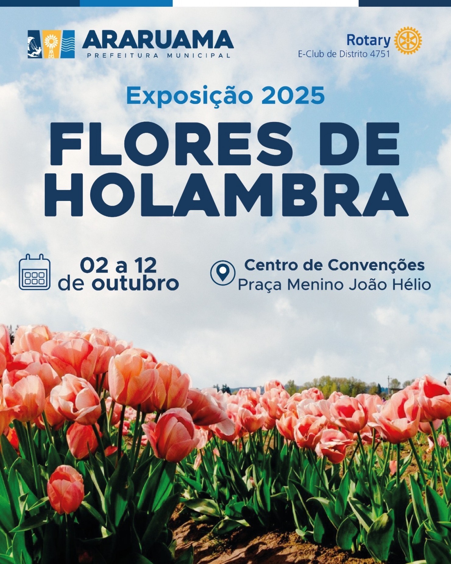 De 02 a 12 de outubro, o Centro de Convenções (que fica na Praça Menino João Hélio) vai receber a Exposição Flores de Holambra, um dos maiores eventos de flores e plantas ornamentais da região.