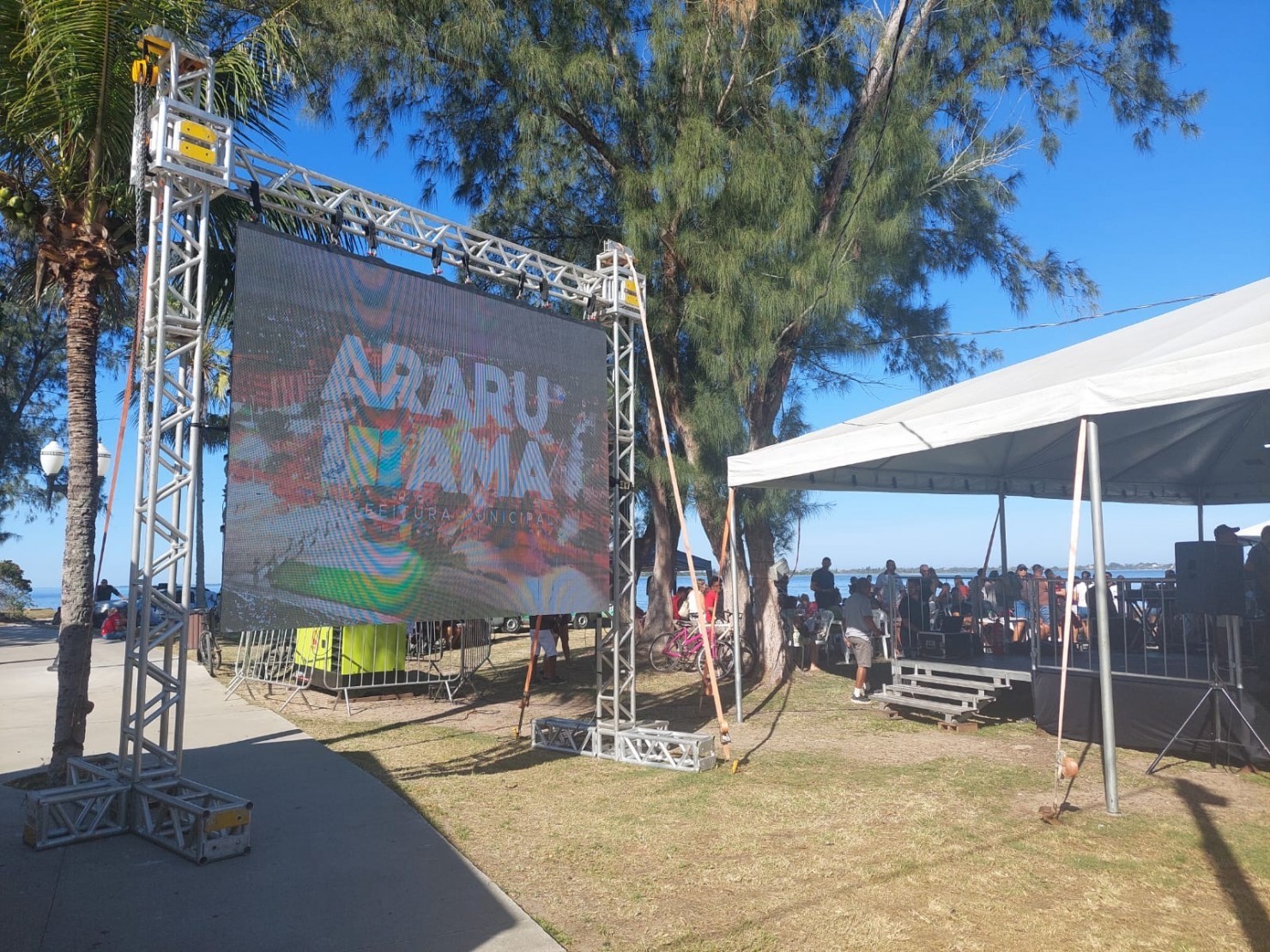 E para os apaixonados por futebol, a Prefeitura preparou uma surpresa: um telão de LED instalado ao lado do palco para que todos possam acompanhar, a partir das 16h, a transmissão ao vivo do jogo entre Flamengo e Bayern de Munique.