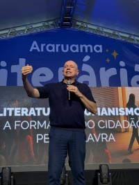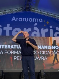 No último domingo (25), a Araruama Literária viveu um de seus momentos mais marcantes com a presença do historiador, escritor e um dos mais influentes pensadores da atualidade, Leandro Karnal. Em uma palestra memorável, com o tema “Literatura e Humanismo: a formação do cidadão pela palavra”, Karnal atraiu uma multidão à Tenda Principal do evento, que ficou completamente lotada, e à frente do telão localizado na lateral da tenda, para que as pessoas que estivessem na Praça Menino João Hélio, também pudessem assistir à palestra.