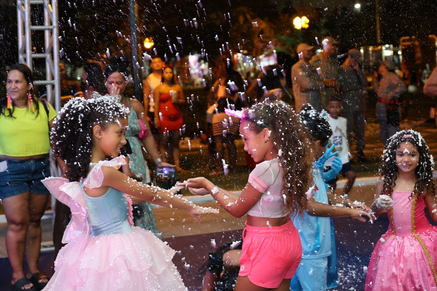 Famílias inteiras, grupos de amigos e muitas crianças se reuniram para comemorar o início da folia em um ambiente de alegria e descontração.