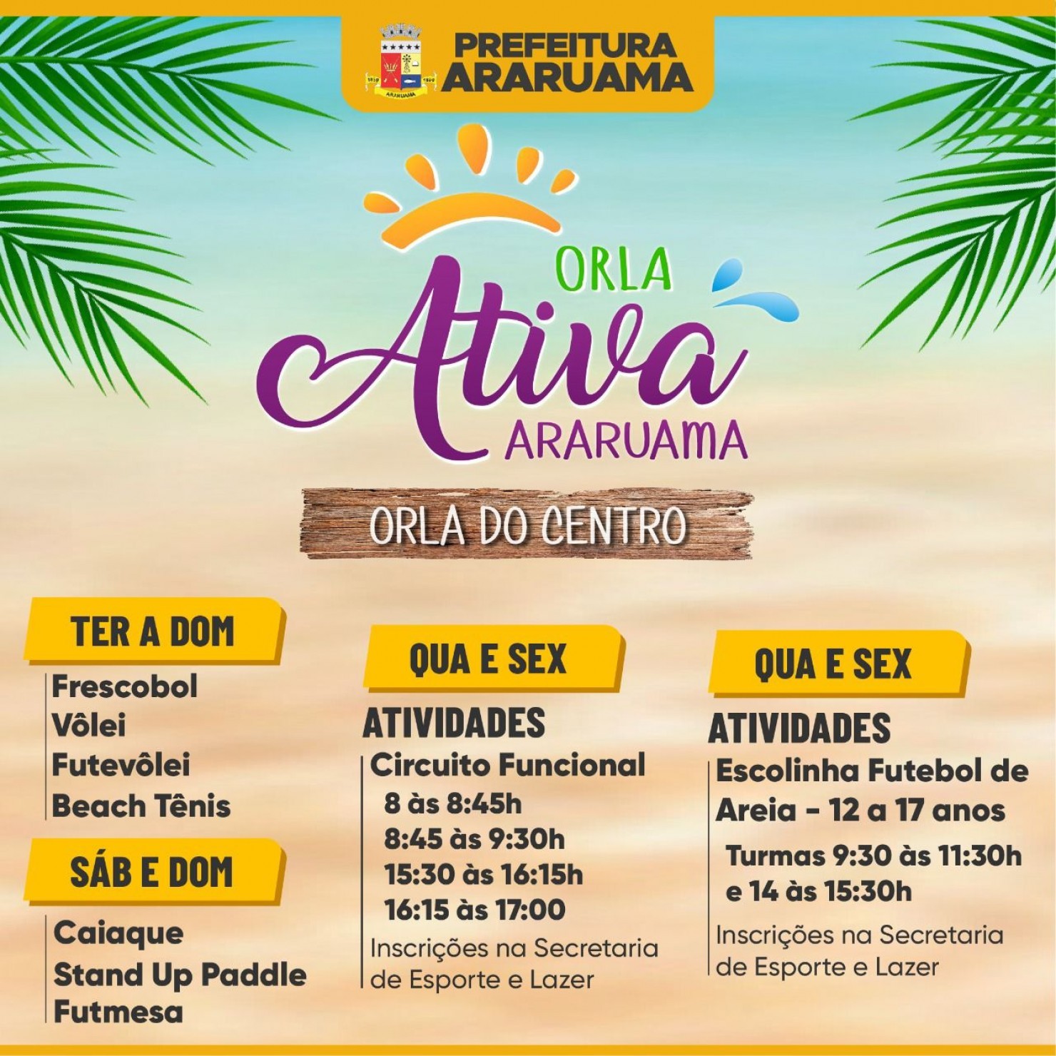 Tem, ainda, as modalidades que não necessitam de inscrição e também vão acontecer na orla do centro.