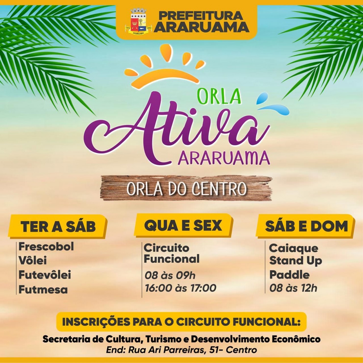 Agora, é só disposição e garra. Monte sua equipe com seus amigos e venha se exercitar com o projeto “Orla Ativa”.