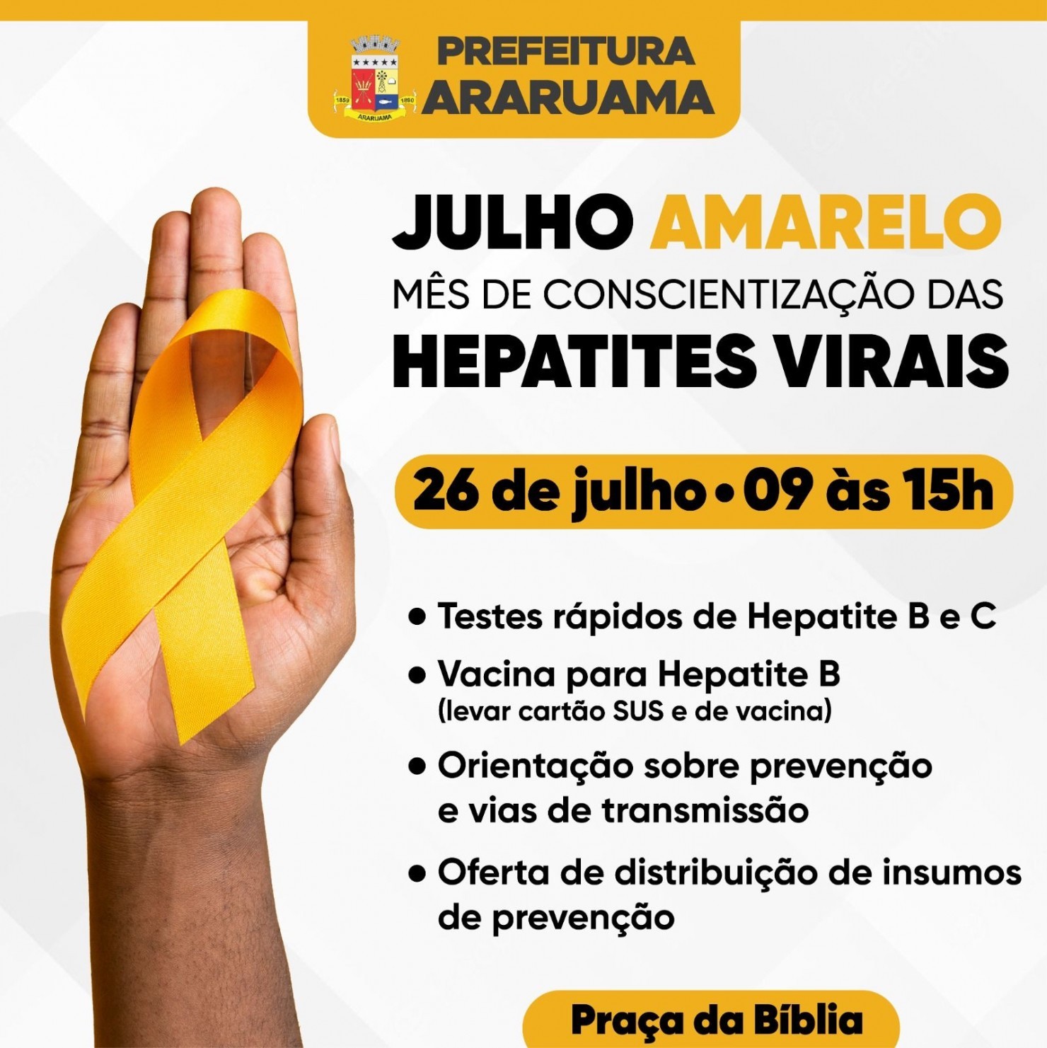 No local serão realizados testes rápidos gratuitos de hepatites B e C e vacinação para hepatite B (nesse caso é preciso levar documento do Sus, carteira de vacinação e o documento de identidade).