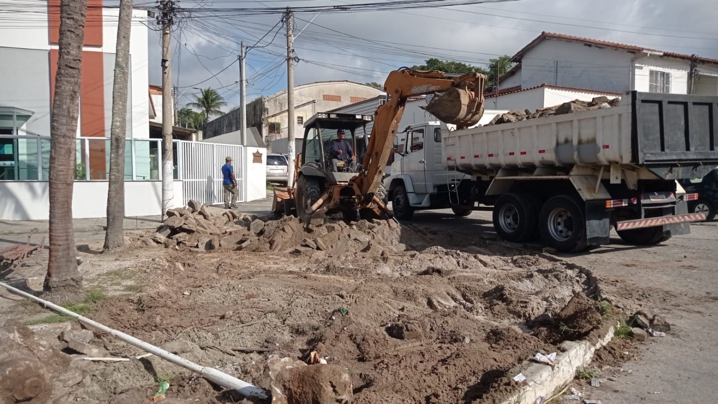 Por meio da Secretaria Municipal de Obras e Urbanismo, estão sendo realizadas as obras de drenagem e pavimentação da Rua da Praça do Poço, no bairro Praça da Bandeira, e a revitalização da Praça da Bandeira, localizada no bairro Outeiro.