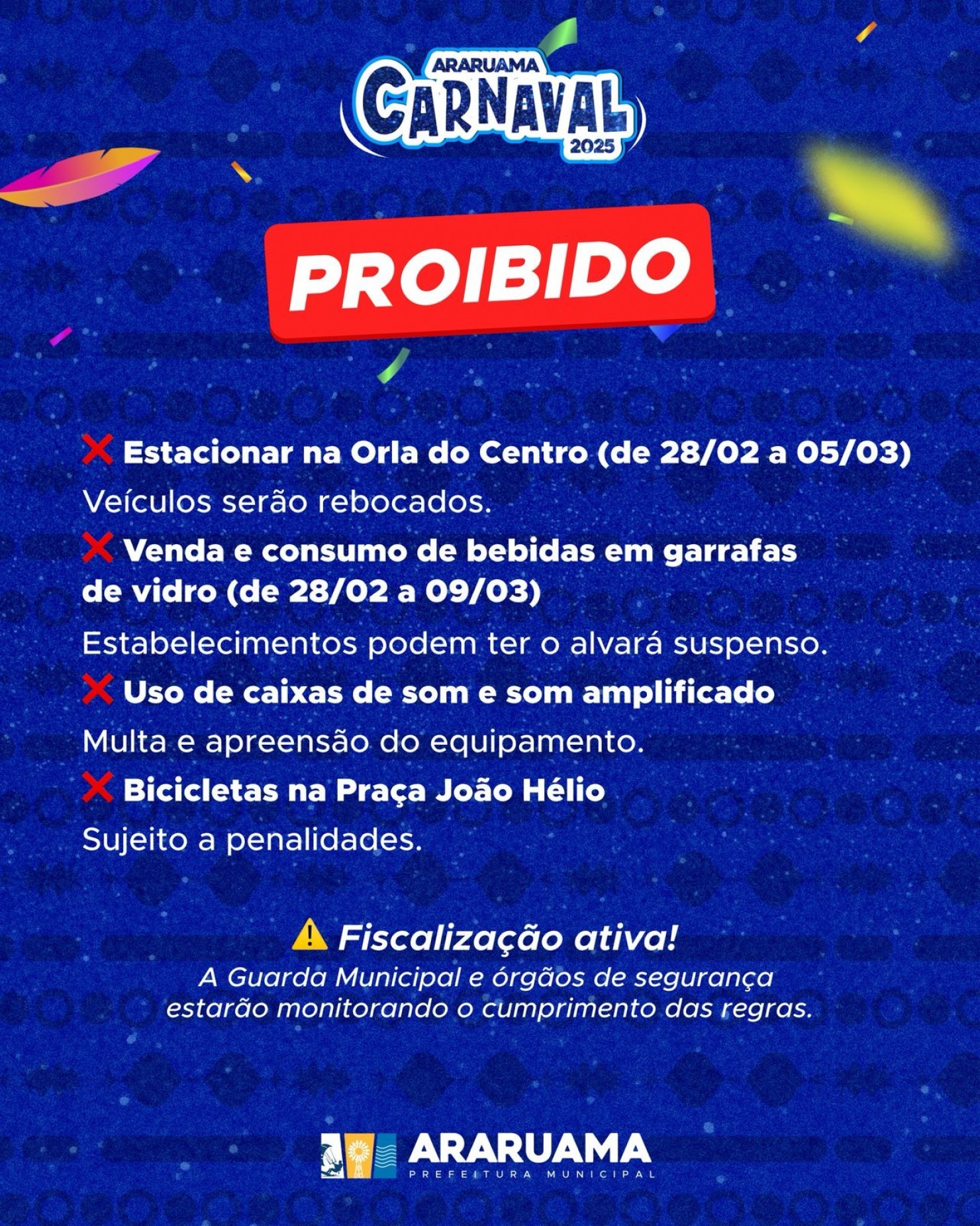 Para garantir a segurança, a ordem pública e o bem-estar da população durante o Carnaval, a Prefeitura de Araruama publicou hoje o decreto nº33, que cria uma série de regras durante o período festivo.
