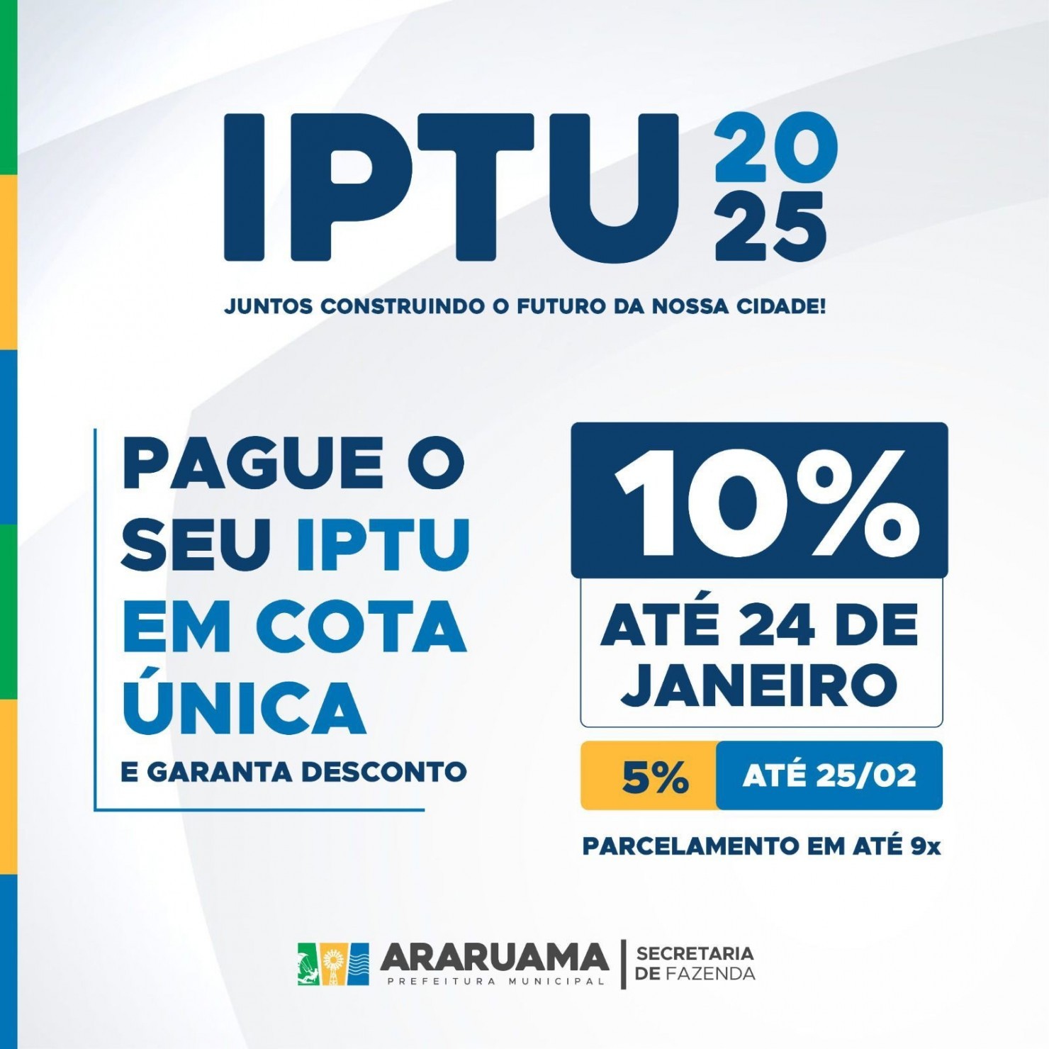 A Prefeitura de Araruama, por meio da Secretaria de Fazenda, já está disponibilizando o carnê do Imposto Predial e Territorial Urbano, IPTU, 2025, aos moradores e pessoas que possuem imóveis no município.