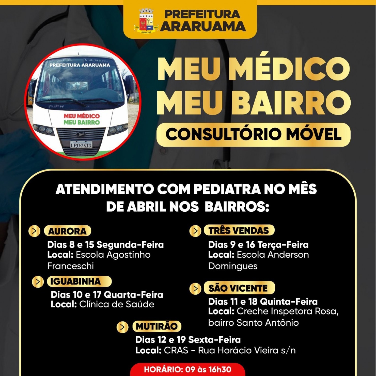 O atendimento é feito de maneira itinerante, por meio de um ônibus todo equipado. Anota aí os locais e os dias da semana; lembrando que o atendimento é sempre das 09h às 16h30.