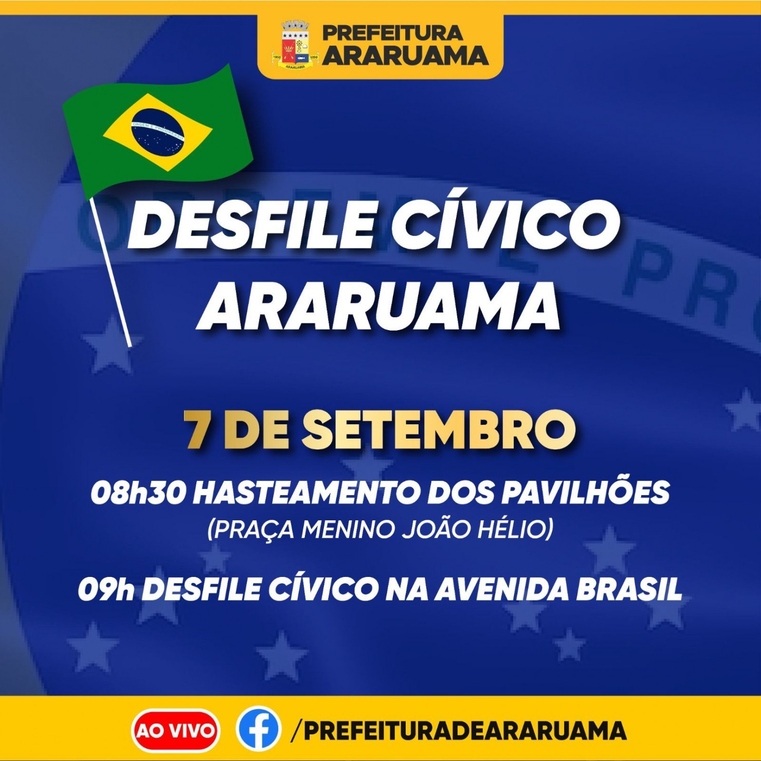 Quem não puder comparecer presencialmente, vai poder acompanhar o evento da Independência de maneira on-line pelo Facebook da Prefeitura de Araruama.