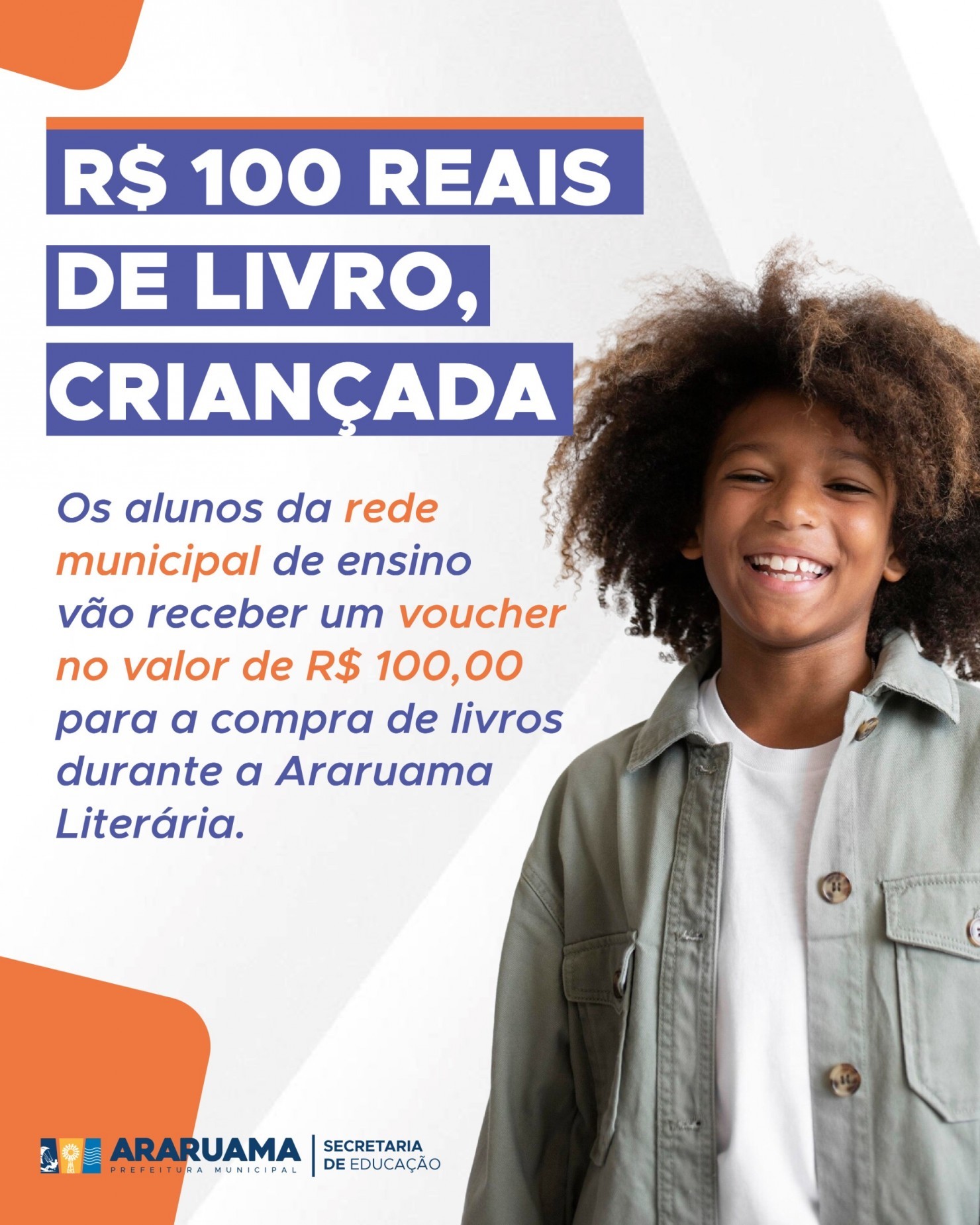 A Prefeitura de Araruama, por meio da Secretaria Municipal de Educação, está promovendo uma importante ação de incentivo à leitura entre os estudantes da rede pública: cada aluno das unidades escolares municipais vai receber um voucher no valor de R$ 100,00 para a compra de livros durante a Araruama Literária.