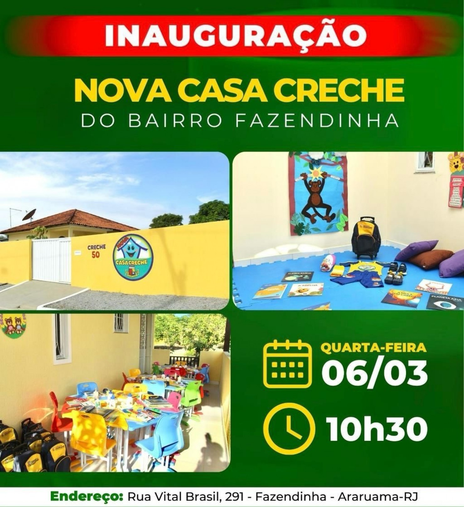 Nessa quarta-feira, 06, a Prefeitura, por meio da Secretaria de Educação, vai inaugurar mais uma Casa Creche na Fazendinha. Com essa unidade já somam 8 Casas Creche no bairro.