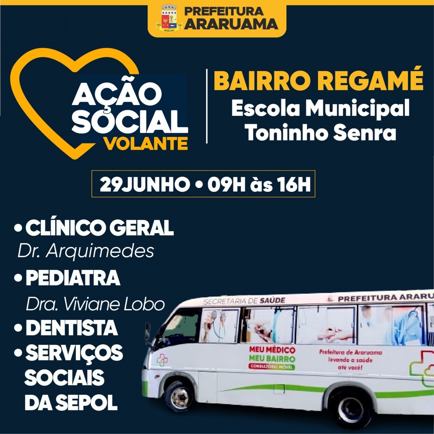 Prefeitura de Araruama vai realizar Ação Social Volante no bairro Regamé, nesse sábado, 29