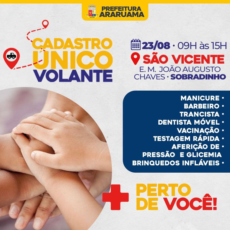 Durante a ação os moradores de São Vicente também vão ter acesso a vários serviços gratuitos, como aferição de pressão e glicemia, dentista móvel, testagem rápida para COVID-19, além da atualização da caderneta de vacinação das crianças.