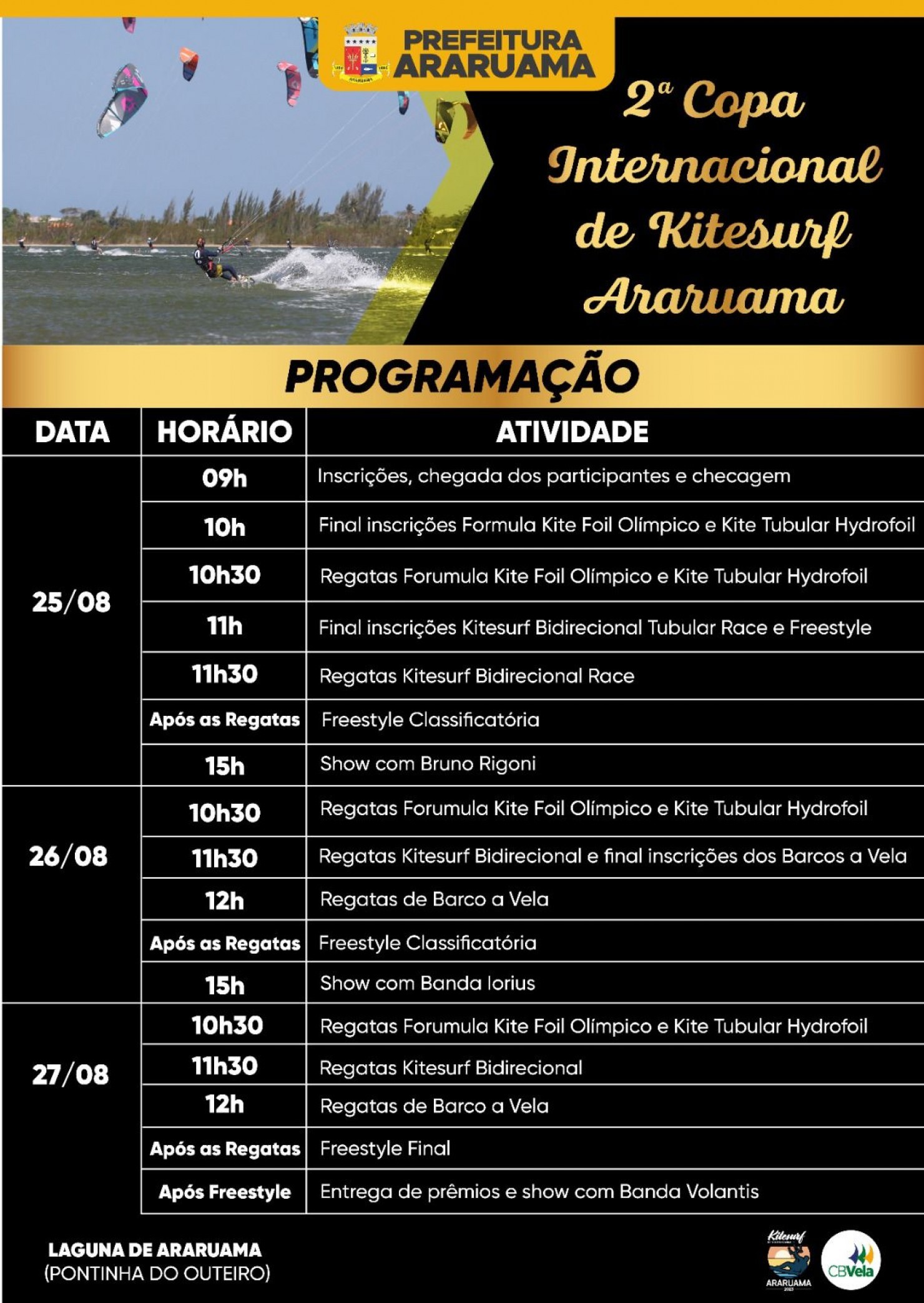 O evento gratuito vai acontecer de 25 a 27 de agosto na Laguna de Araruama (Pontinha do Outeiro), no bairro Areal, entre 10h e 17h.