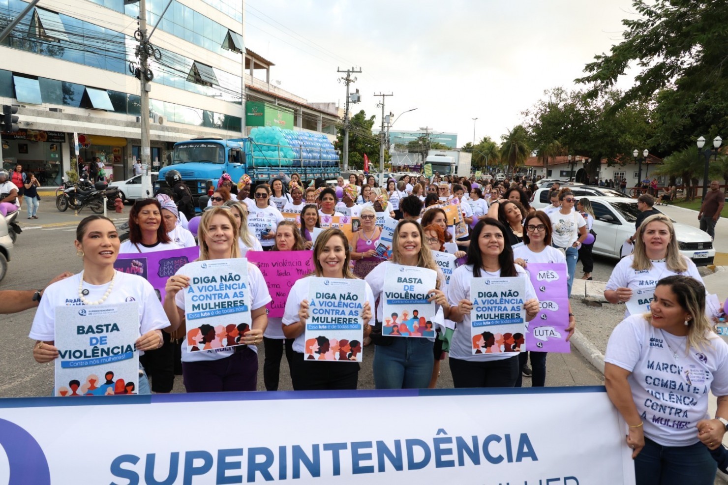 As ruas do Centro de Araruama foram palco, nesta quinta-feira (28), de uma grande mobilização em defesa dos direitos das mulheres. A Prefeitura, por meio da Superintendência da Mulher, realizou a Marcha de Combate à Violência Contra a Mulher, uma das principais ações da campanha Agosto Lilás.