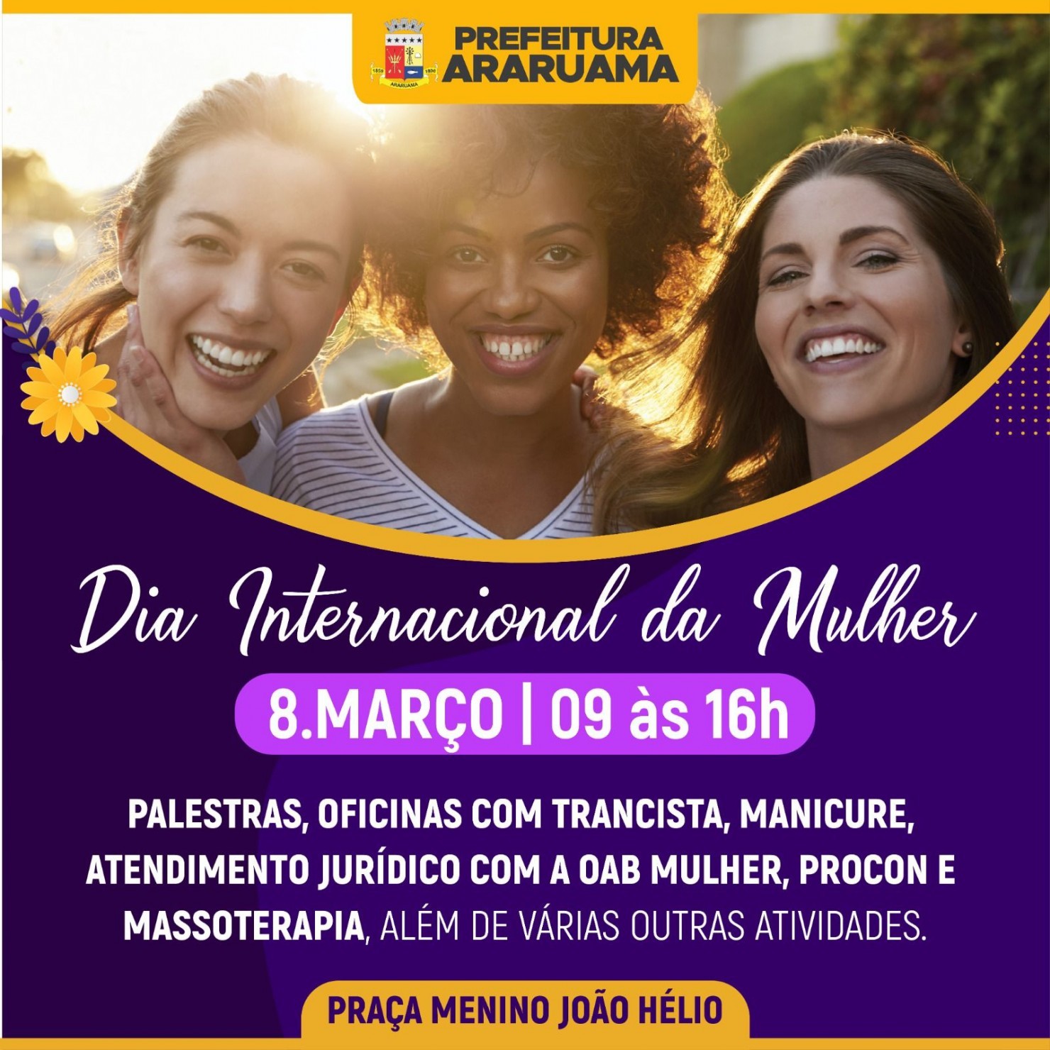 O Dia Internacional da Mulher será comemorado no Brasil nesta quarta-feira, oito de março. Em Araruama, a Prefeitura organizou uma programação especial para enaltecer a força e a sensibilidade feminina.