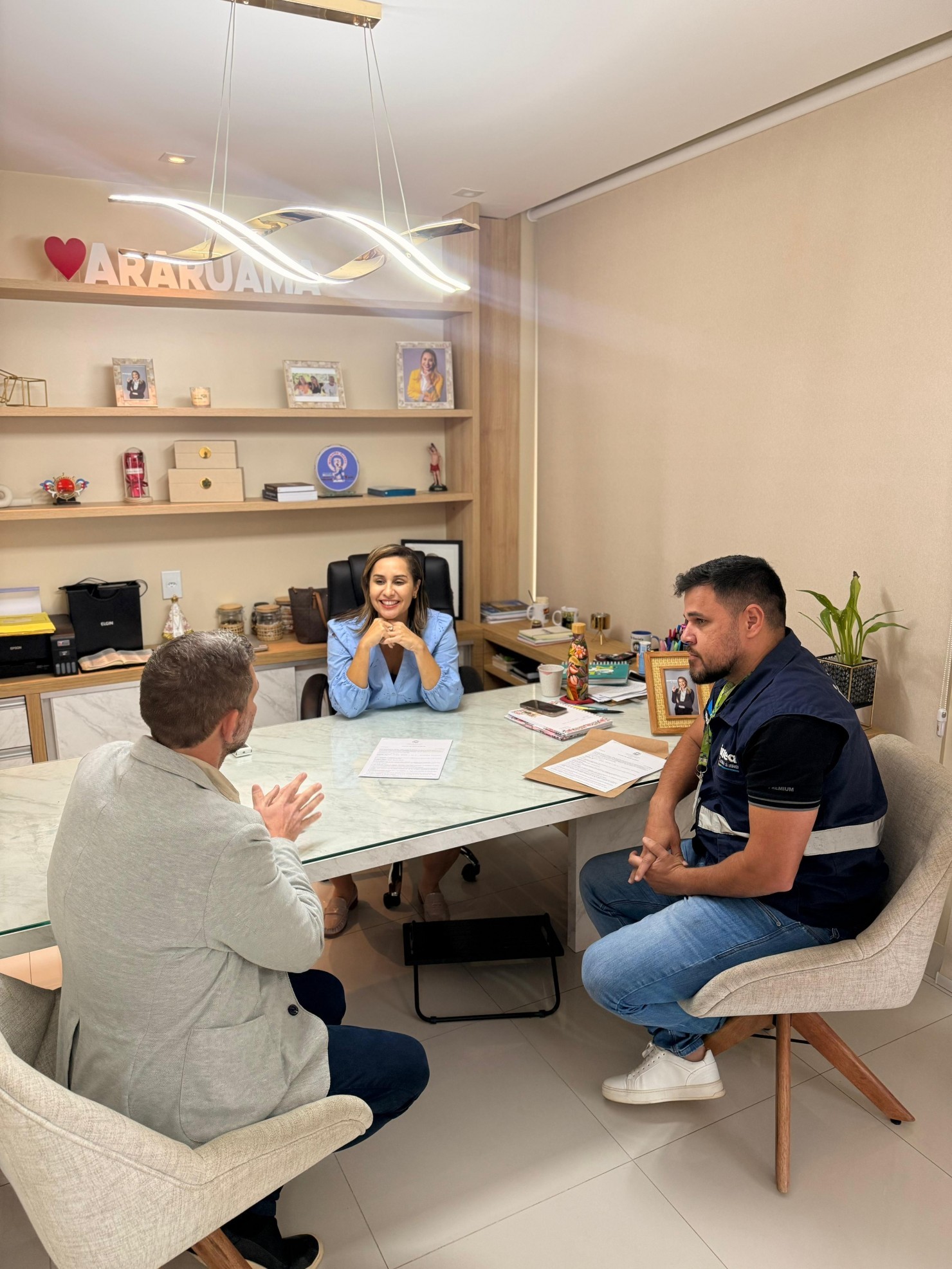 A prefeita Daniela Soares recebeu o superintendente do Instituto Estadual do Ambiente (Inea) da Região dos Lagos, Valdemir Dias, e o diretor da Concessionária Águas de Juturnaíba, Rodrigo Macool, em seu gabinete.