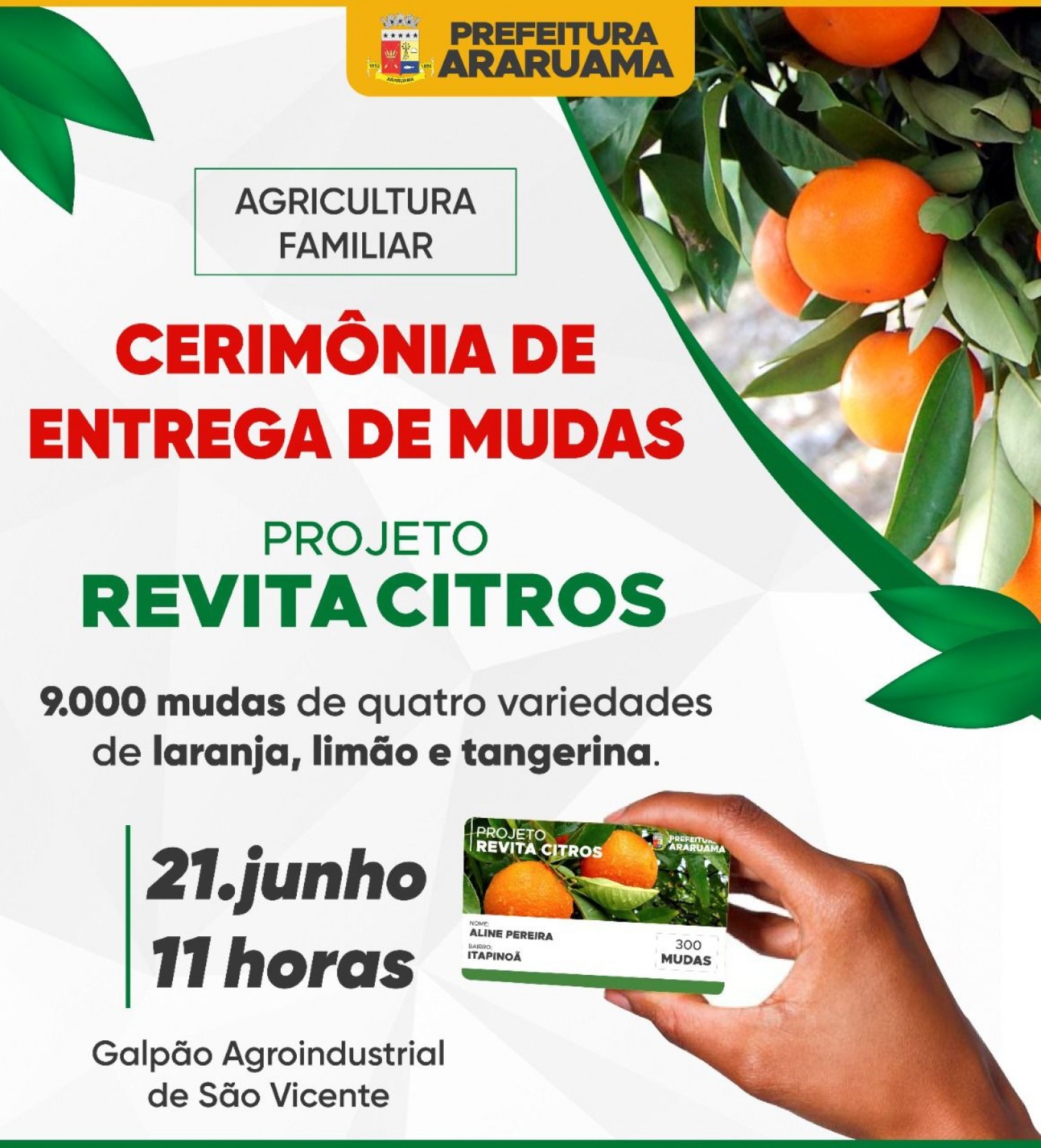 Tanto que na próxima terça-feira, 21, a Prefeitura, por meio da Secretaria de Ambiente, Agricultura, Abastecimento e Pesca vai entregar gratuitamente mais 9 mil mudas de quatro variedades de laranja, limão e tangerina para 45