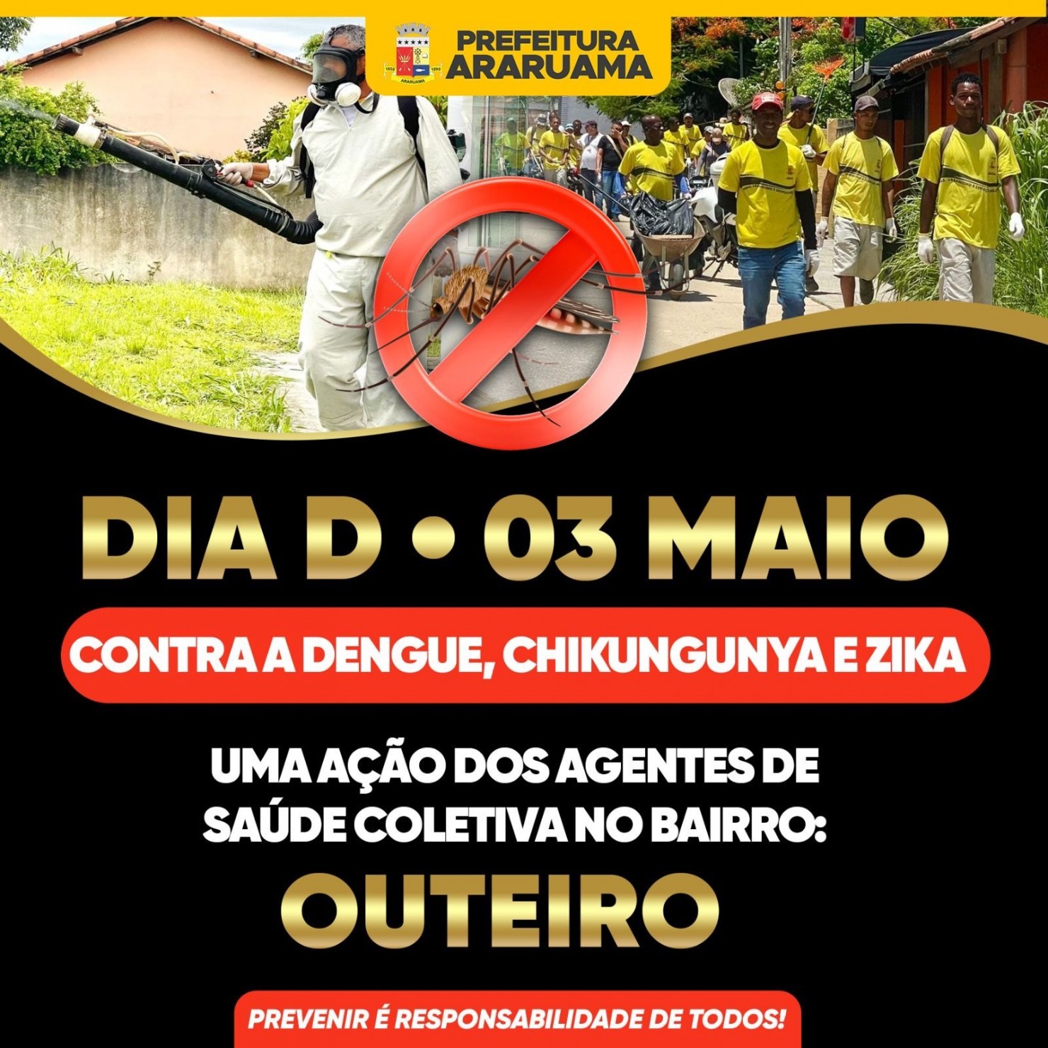 E assim, seguimos juntos, poder público e população firmes na luta para eliminar o Aedes Aegypti, que vale lembrar, também é o transmissor da febre chikungunya, zika e a febre amarela urbana.
