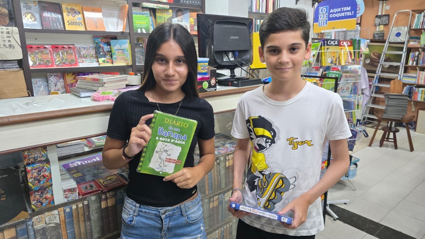 Enquanto a mãe resolvia coisas ali por perto, Yago e Júlia aproveitaram para dar uma passada rápida na livraria. Unidos pelo gosto da leitura e pela relação fraternal, a ida à livraria acabou se tornando muito mais do que um simples passeio. Os irmãos protagonizaram um daqueles momentos singelos que ficam guardados na memória para sempre.
