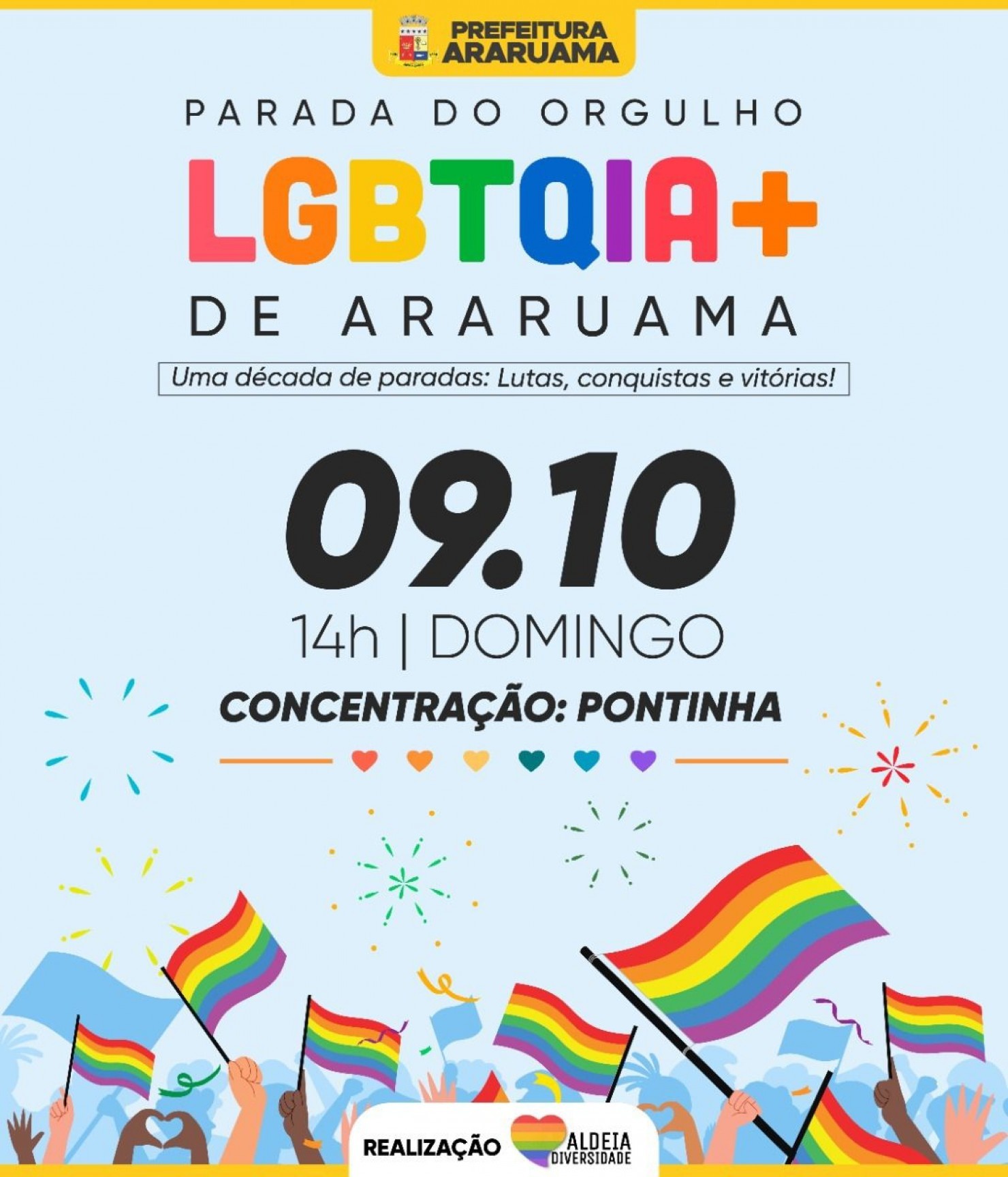 O tema de 2022 em Araruama será: “Uma década de paradas: lutas, conquistas e vitórias”.