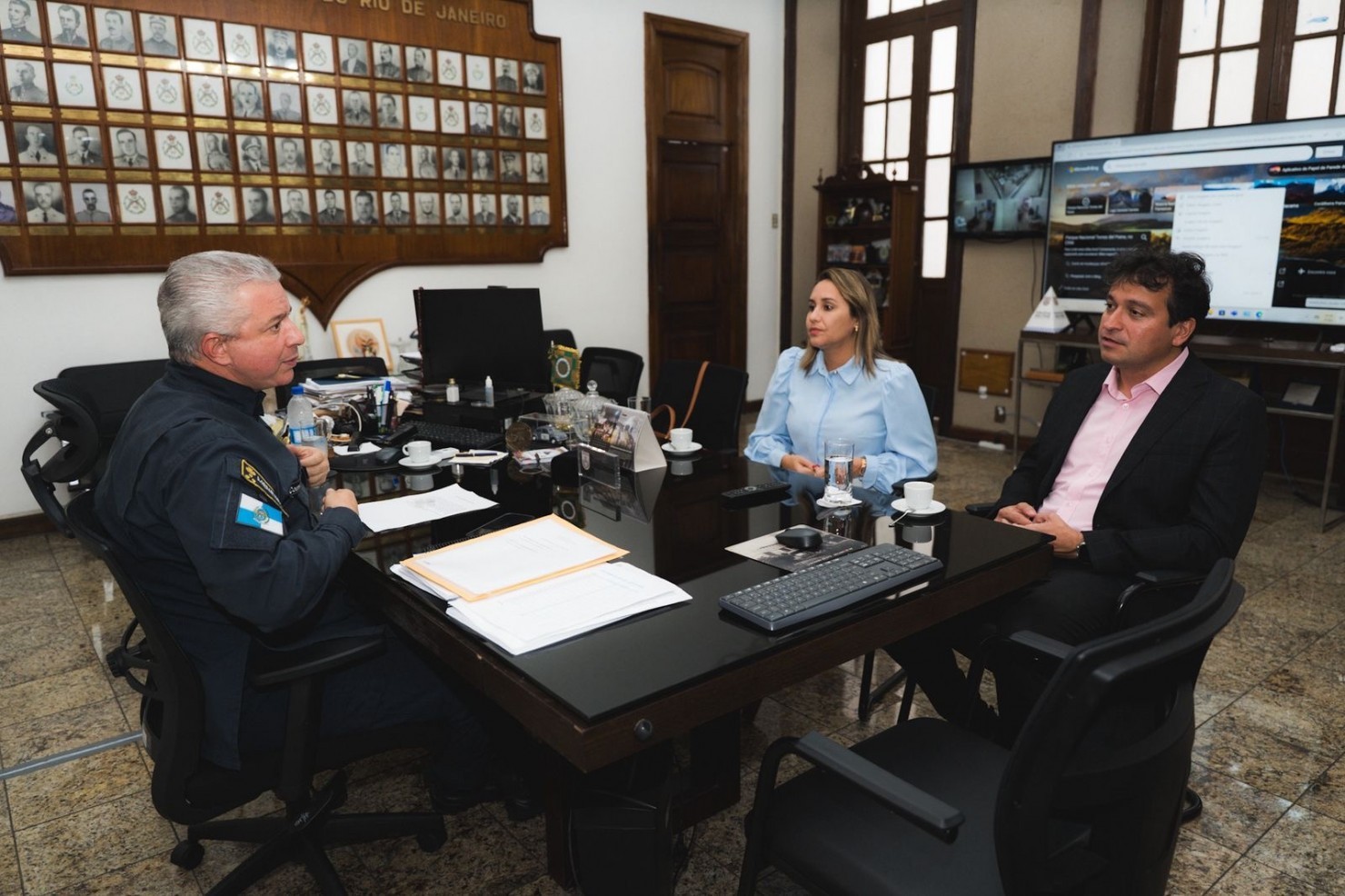 Ainda na capital, a Prefeita esteve no Quartel General da Polícia Militar do Estado do Rio de Janeiro, onde se reuniu com o secretário de Estado da PMERJ e comandante-geral, Coronel Menezes. O encontro teve como pauta principal a viabilização da criação de um batalhão da Polícia Militar em Araruama, reforçando a segurança pública e a presença das forças de proteção no município.