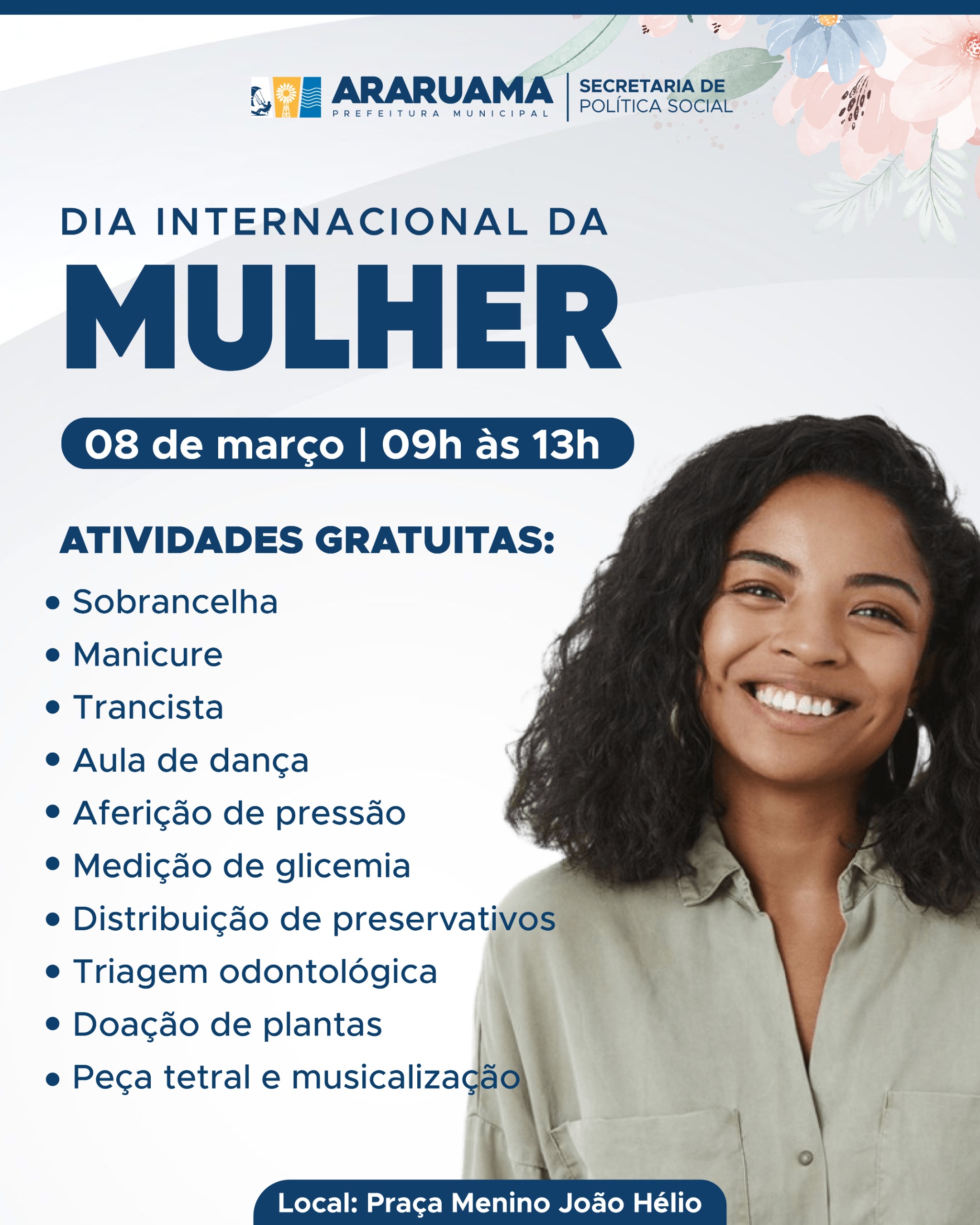 “O Dia Internacional da Mulher é um momento de celebrar nossas conquistas, mas também de reforçar nosso compromisso com o bem-estar e a valorização de cada mulher de Araruama. Por isso, preparamos um evento especial, com serviços gratuitos e ações que refletem o cuidado e o respeito que todas merecem. Que este dia seja de reconhecimento, empoderamento e, acima de tudo, de união”, afirmou a prefeita.