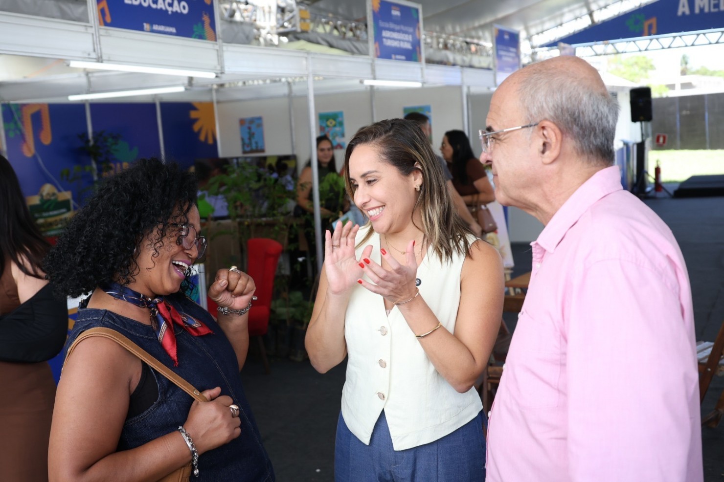 Durante a manhã, a prefeita percorreu os estandes, explorou a tradicional Feira do Aipim — que vem encantando o público com pratos típicos e muita gastronomia local —, almoçou no espaço, assistiu ao show de Junior Antunes e fez questão de interagir com os visitantes.