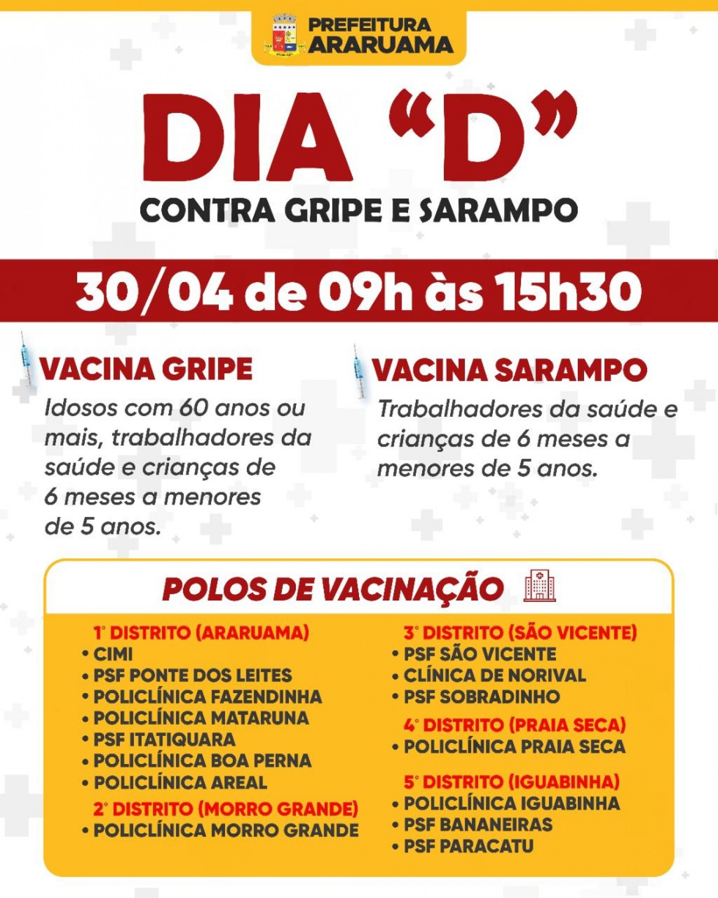 CIMI (obs: apenas vacinação para crianças de 6 meses a menores de 5 anos).
