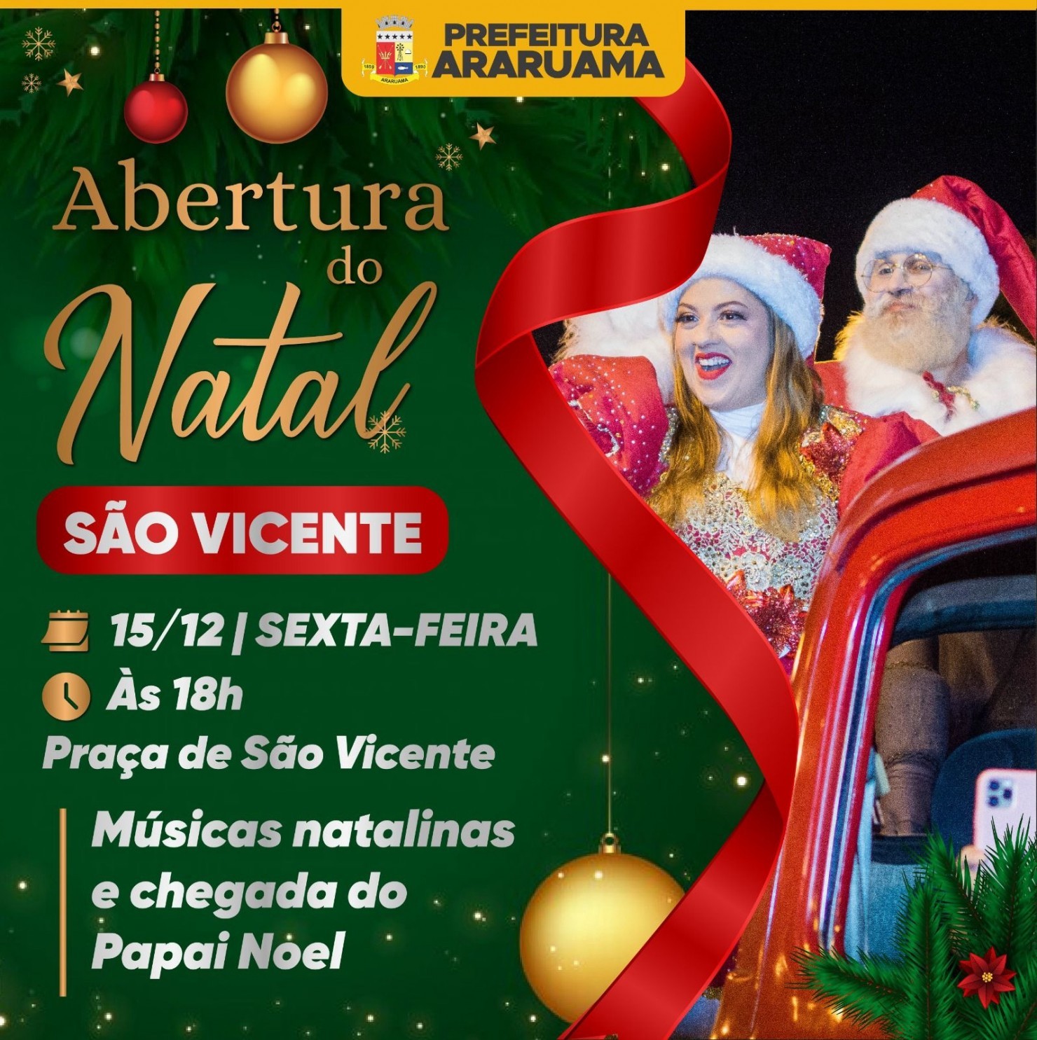 músicas natalinas e o momento mágico que é a chegada do Papai e Mamãe Noel