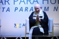 Reconhecida internacionalmente, Monja Coen é missionária oficial da tradição zen-budista Soto Shu, com sede no Japão. Escritora e palestrante, ela tem sua trajetória marcada pelo diálogo entre educação, ética, espiritualidade e responsabilidade social. Durante a palestra, ela fez   reflexões profundas sobre o papel da escola na formação integral dos alunos. "Não é errando que se aprende. É corrigindo os erros", afirmou. Logo depois, a Monja Coen fez diversas indagações, instigando a plateia: