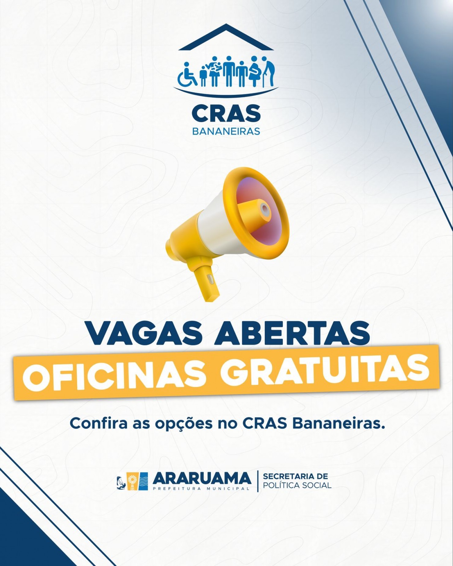 A Prefeitura de Araruama, por meio da Secretaria de Políticas Sociais (SEPOL), informa que estão abertas as inscrições para as Oficinas Profissionalizantes Gratuitas no Centro de Referência de Assistência Social (CRAS) Bananeiras.