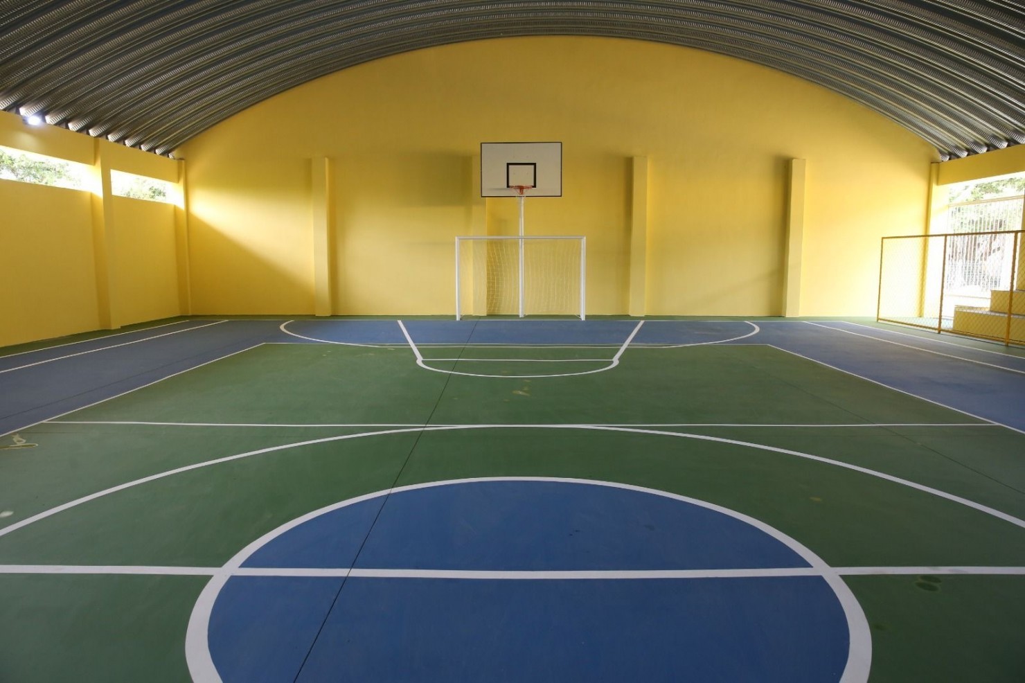 O ginásio vai atender aos mais de 570 alunos da escola. É amplo, todo coberto, possui arquibancada e apresenta demarcações para a prática de várias modalidades esportivas, como futsal, handball e voleibol.