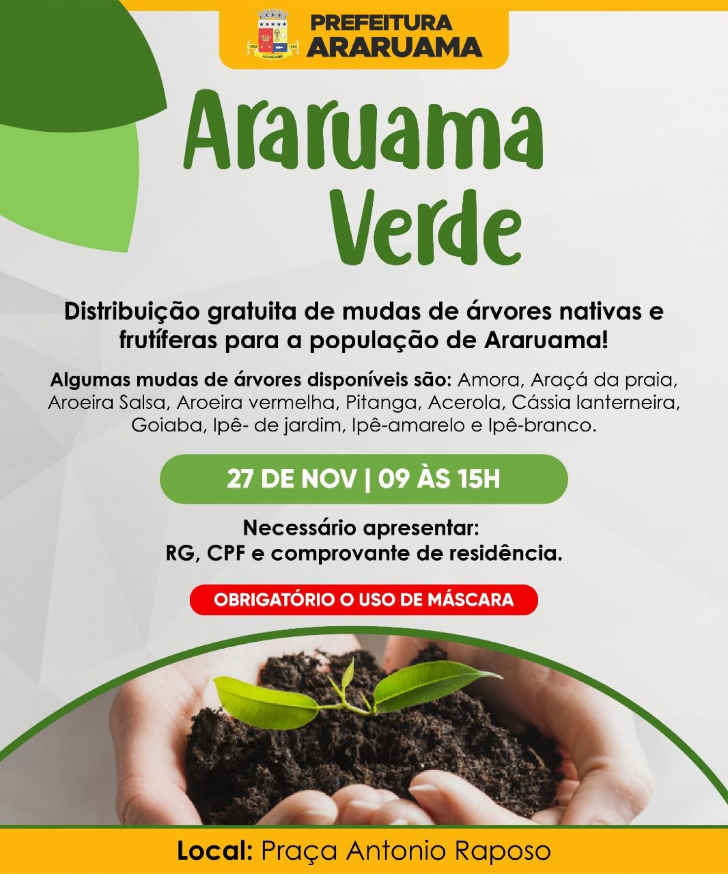 Vale ressaltar que cada morador terá direito de levar uma muda pra casa. Para isso, será preciso apresentar RG, CPF e Comprovante de endereço.
