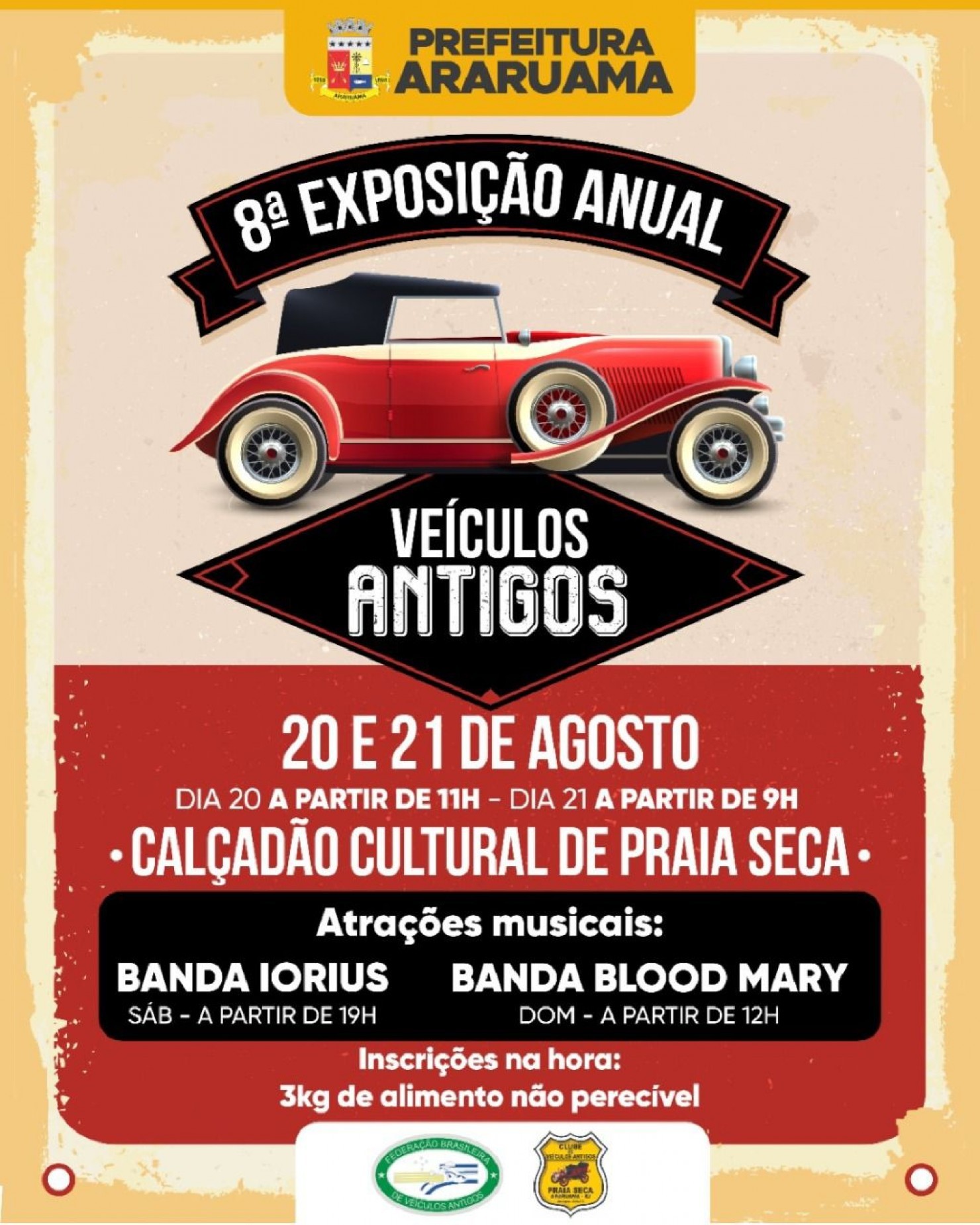 O evento, que tem o apoio do Clube de Veículos Antigos de Praia Seca, vai acontecer nos dias 20 e 21 de agosto, no Calçadão Cultural de Praia Seca, com entrada gratuita.