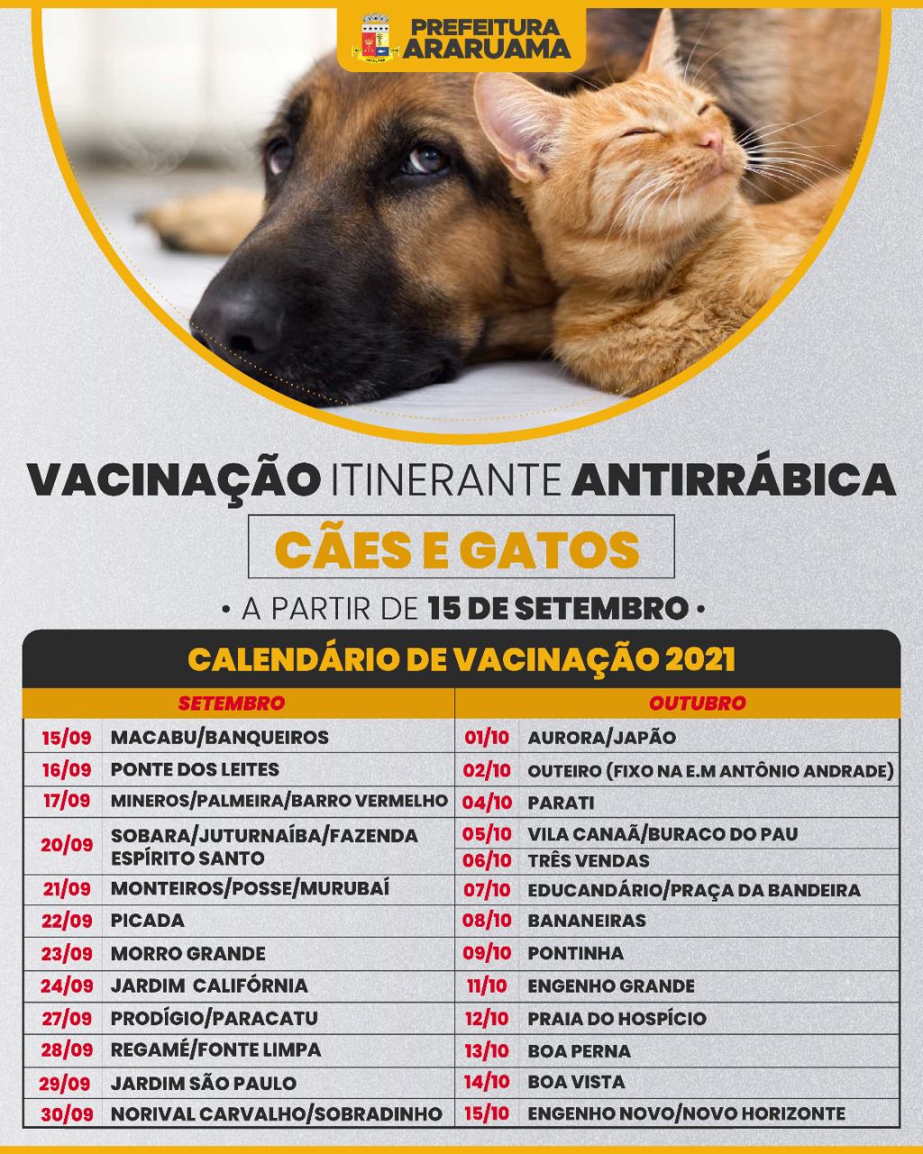 Veja no quadro abaixo quais locais serão atendidos em Araruama pela vacinação itinerante.