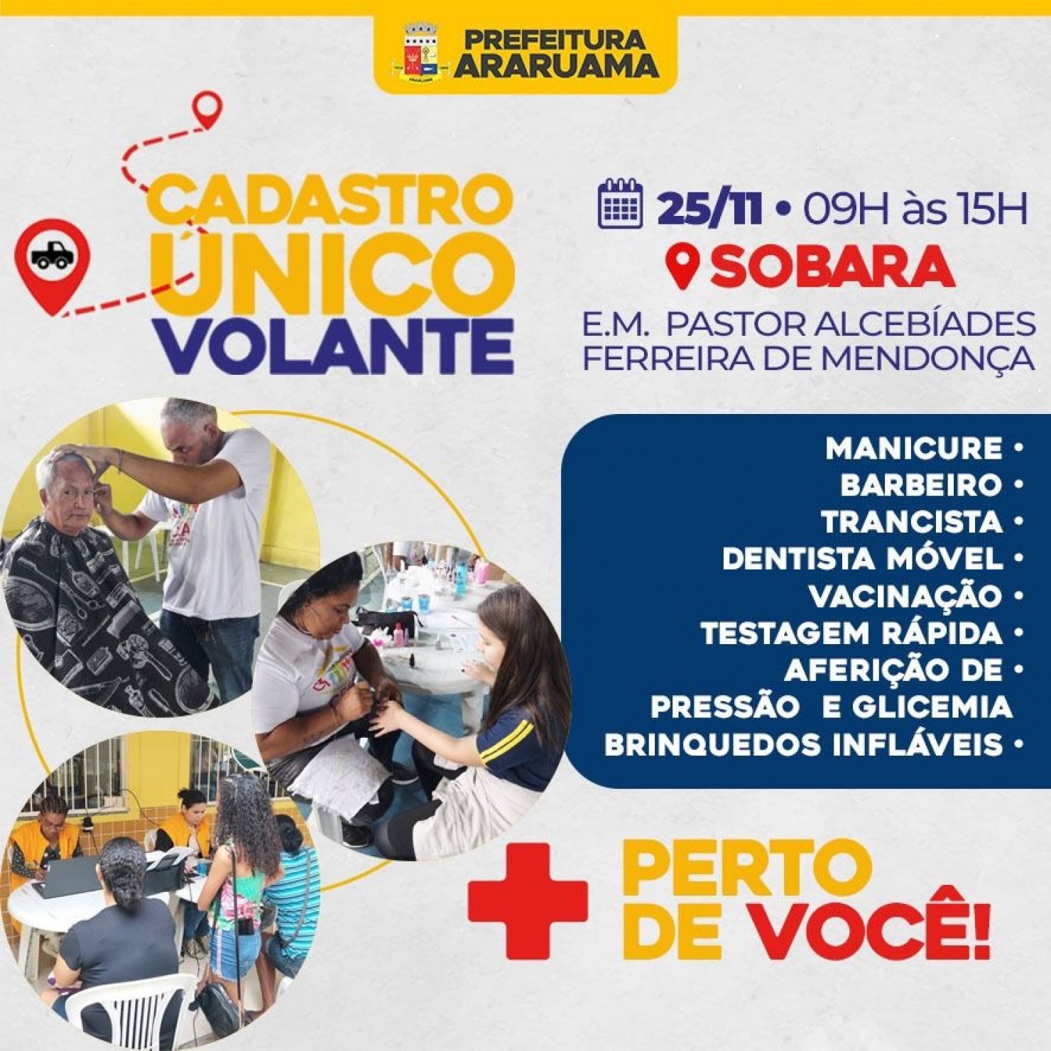 As equipes estão se deslocando até onde a população está para atender ao maior número de pessoas e levar outros serviços gratuitamente durante uma grande ação social.
