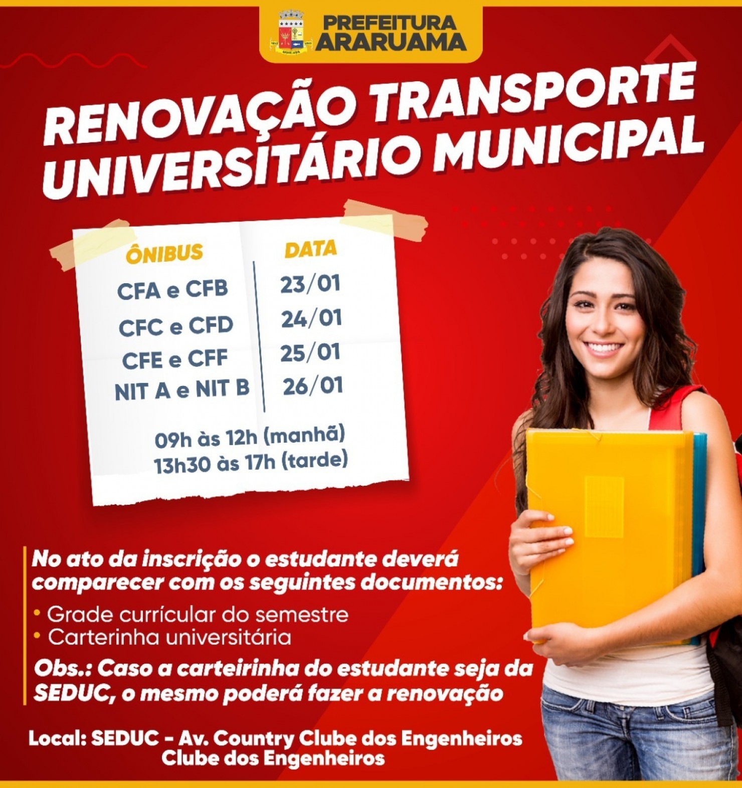 A renovação vai acontecer entre os dias 23 e 26 de janeiro , das 09h às 12h e de 13h30 às 17h, presencialmente na sede da Secretaria de Educação, que fica na Avenida Country Clube dos Engenheiros, no bairro Clube dos Engenheiros.