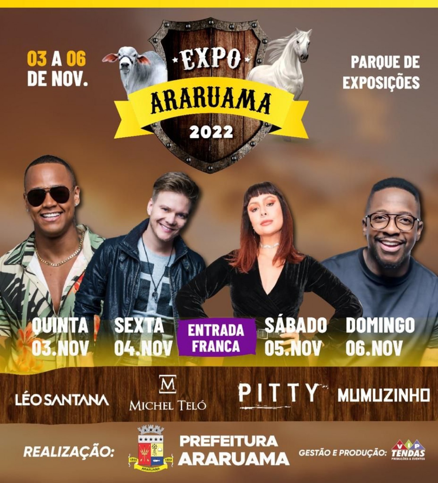 Isso tudo durante o dia. Já no período da noite a animação vai ficar por conta dos shows com grandes artistas nacionais, a partir das 22 h no palco principal.