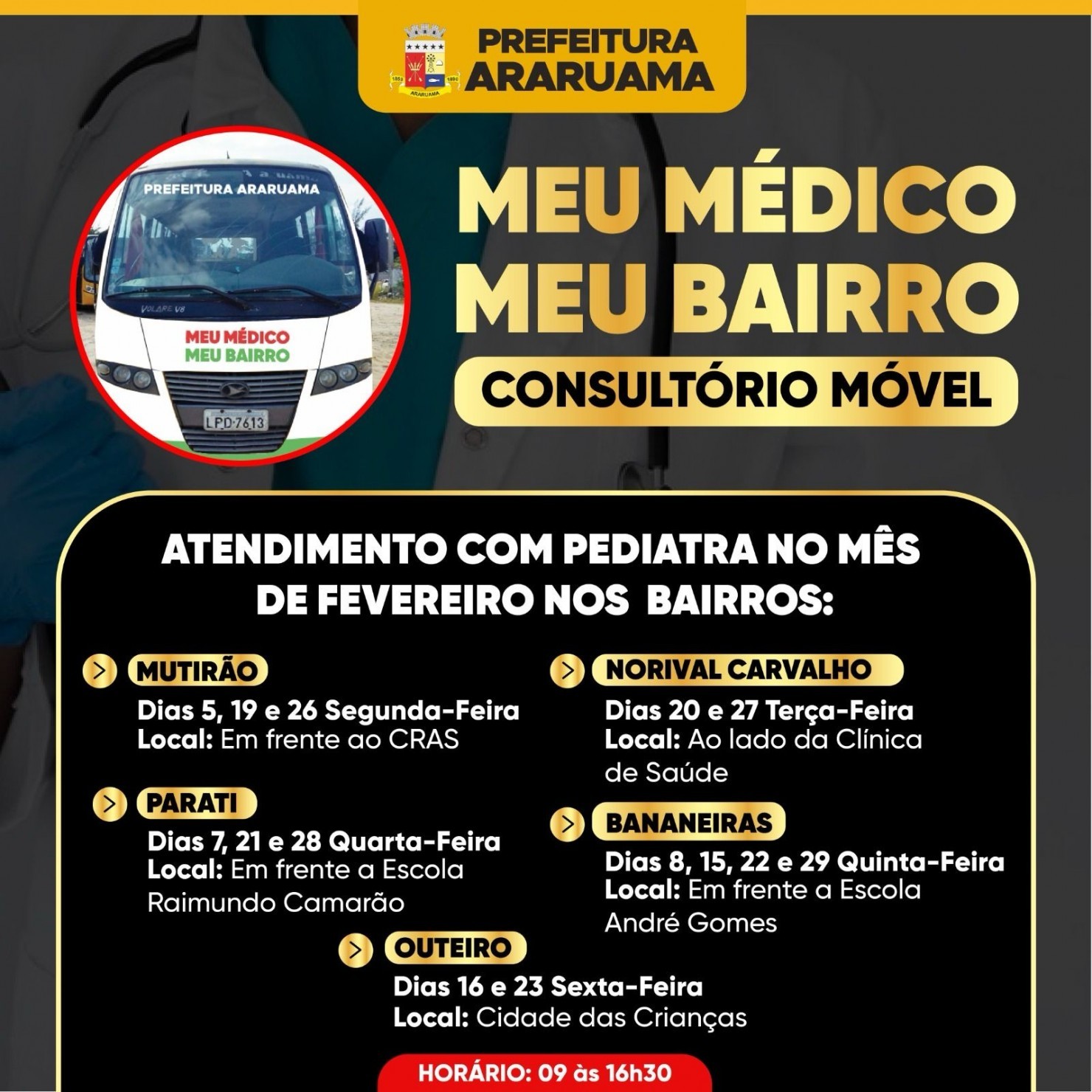 Os bairros contemplados nesse mês de janeiro são: Mutirão, Norival Carvalho, Bananeiras, Outeiro e Parati.