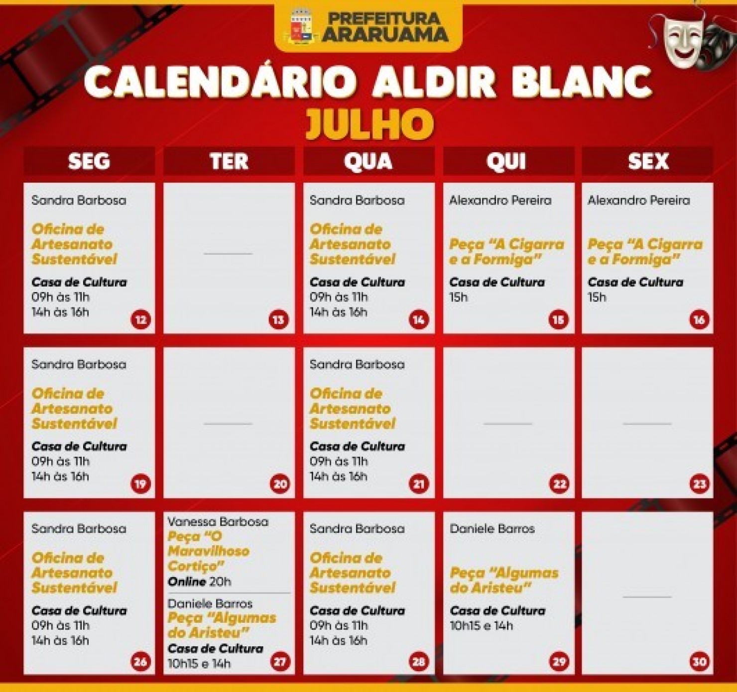 Acompanhe no calendário abaixo as apresentações do mês de julho.