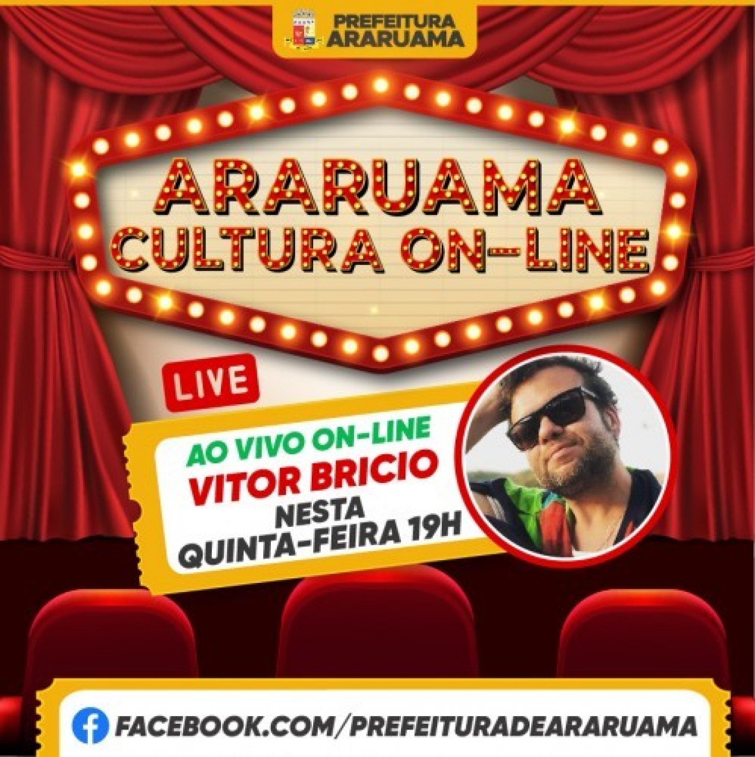O projeto “Araruama Cultura On-line” vai acontecer todas as quintas e sextas-feiras, sempre das 19h às 20h pela página do Facebook da Prefeitura, e tem o objetivo de valorizar os artistas locais, além de fomentar a cultura, levar arte e entretenimento aos moradores.