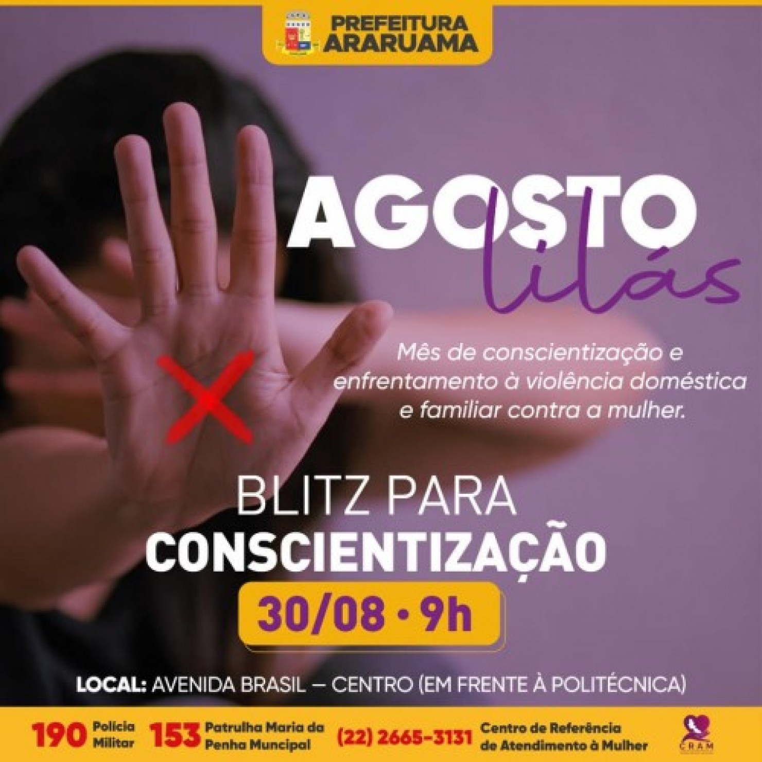 Além disso, será esclarecido que essas vítimas têm um espaço de acolhimento quando ocorrem esses casos, que é o CRAM, onde elas recebem atendimento social, psicológico e jurídico.