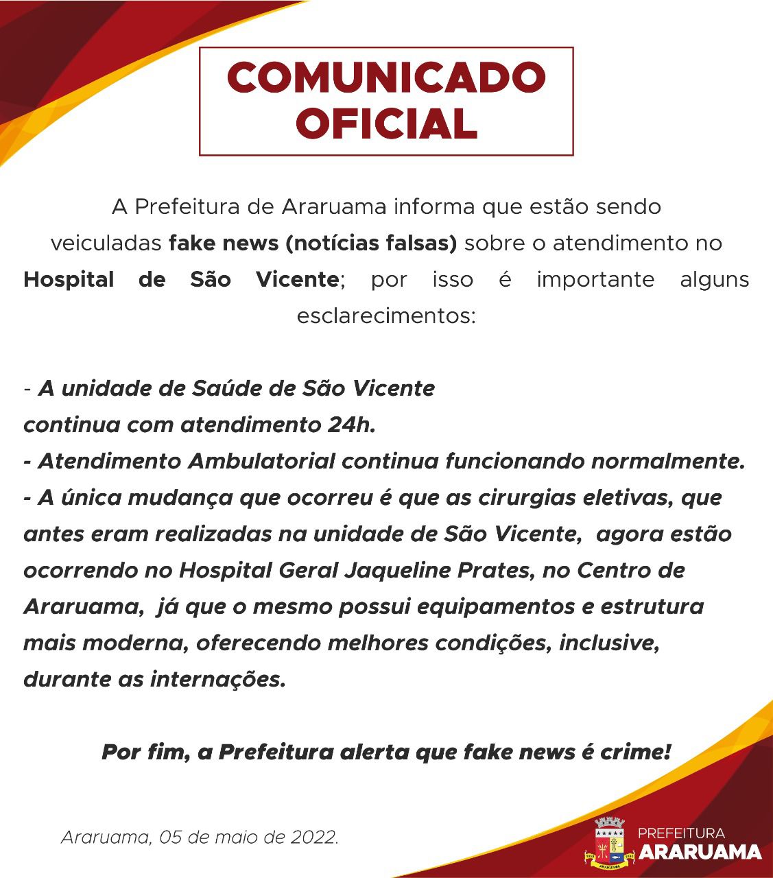 ouvidoriageral@araruama.rj.gov.br - (22) 3666-0010